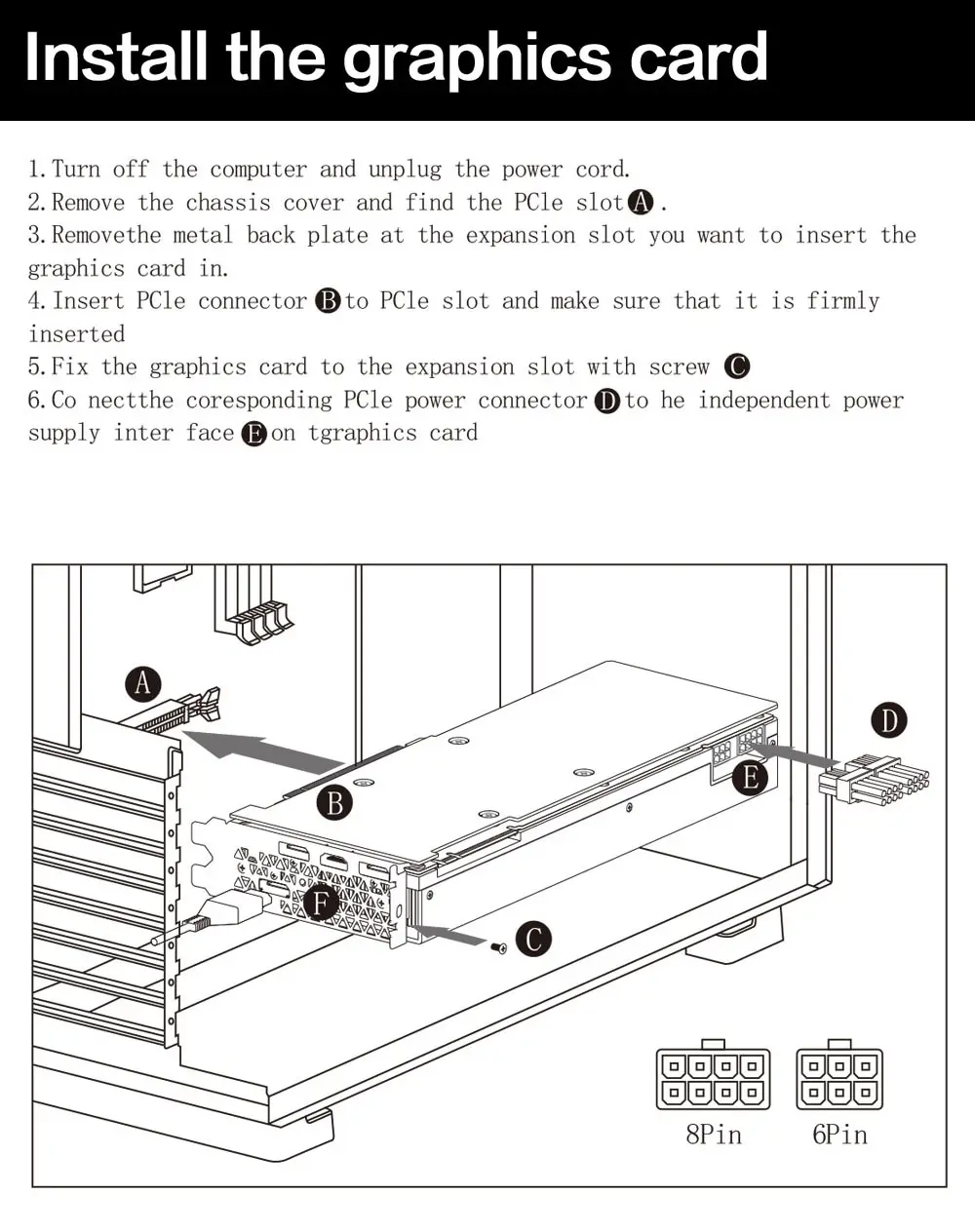 6. Совместное соединение разъема питания PCle (D) с независимым источником питания (E) на видеокартеПримечание: