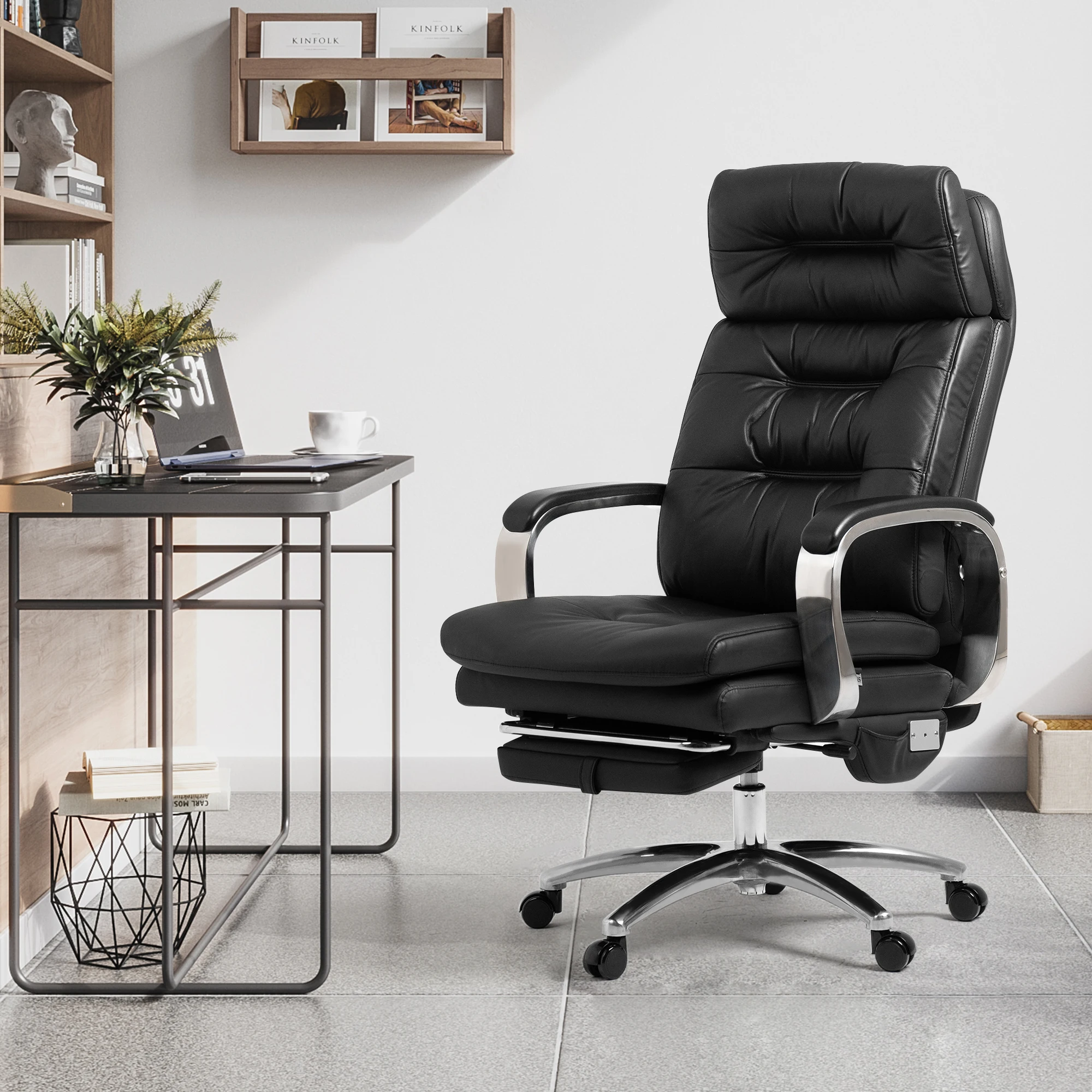 Игровое кресло KIINNLS Vane Офисное массажное кресло из воловьей кожи с подкладкой для ног Эргономичное управление Исполнительное полностью откидное кресло