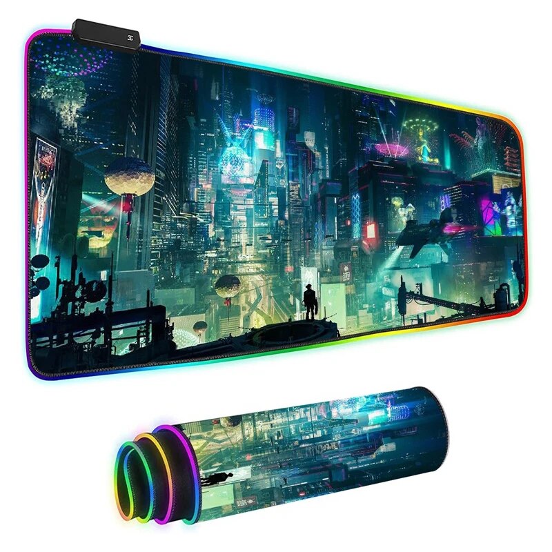 Игровой компьютерный коврик для мыши с мультипликационным рисунком RGB, большой коврик для мыши, геймерский коврик для мыши XXL, светящийся большой коврик для мыши, настольный игровой коврик для ПК с подсветкой
