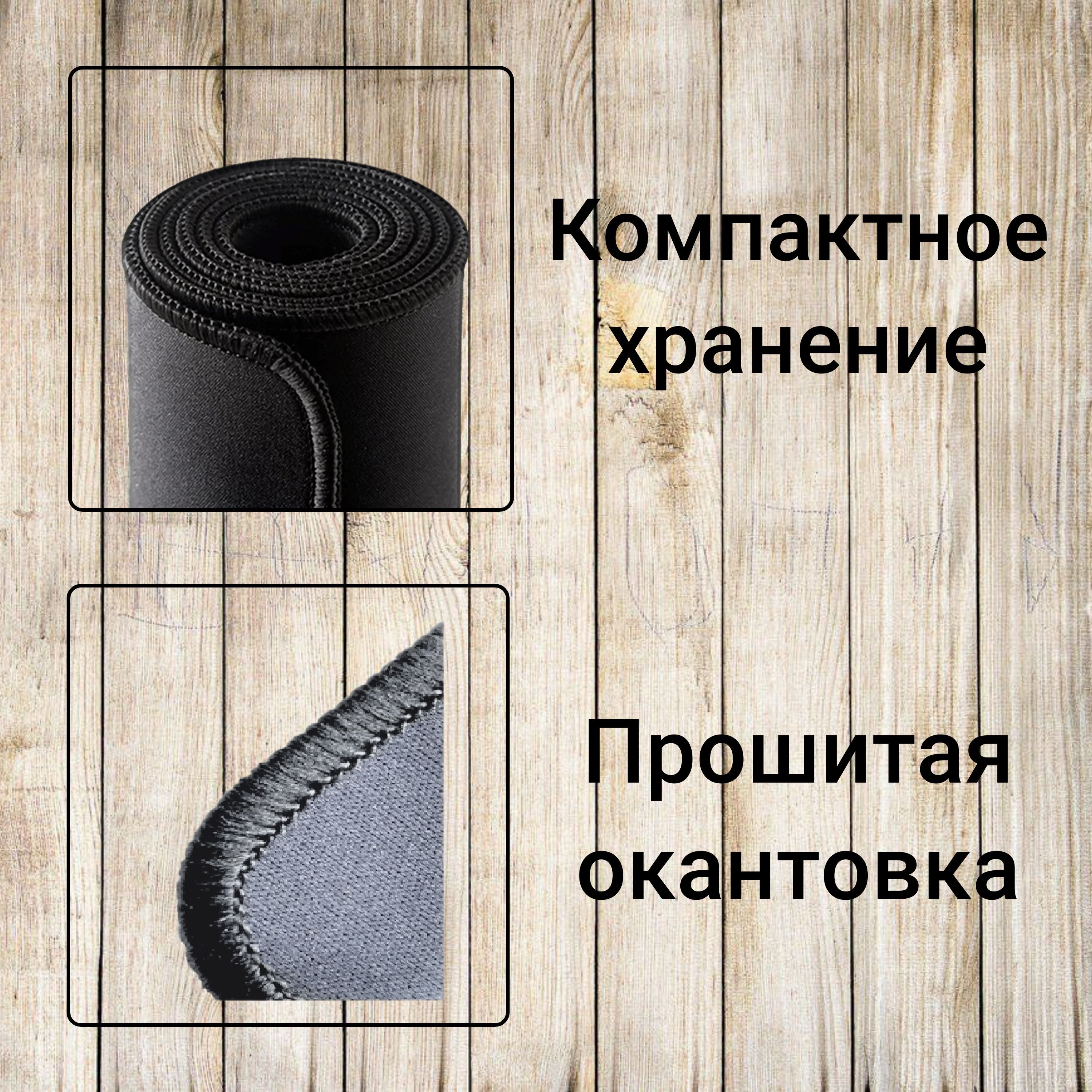 Особенности коврика: Прошитые края, Нескользящая основа, Водоотталкивающая поверхность