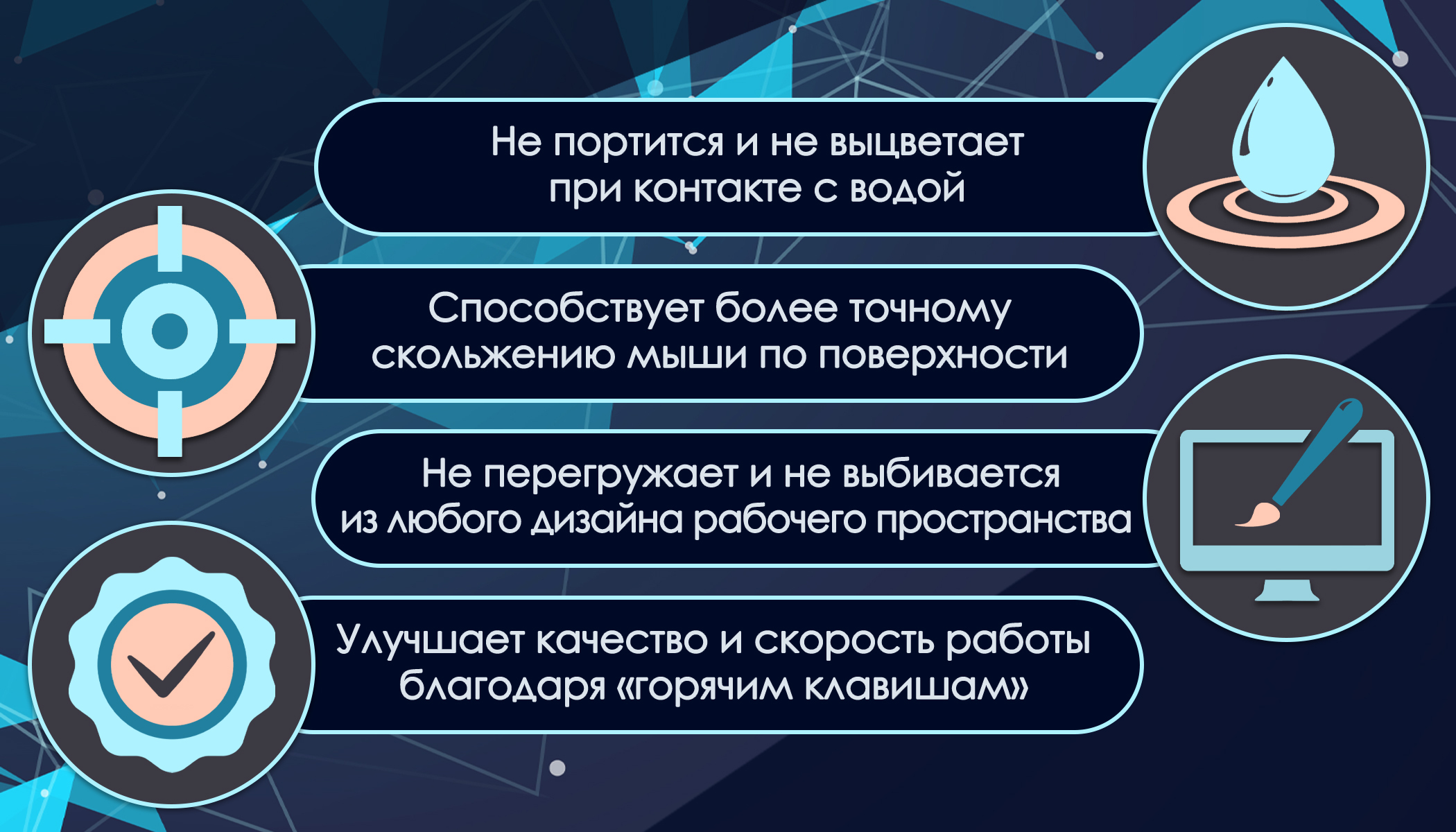 + Подходит для оптических и лазерных мышей с любой чувствительностью и любым типом сенсора;