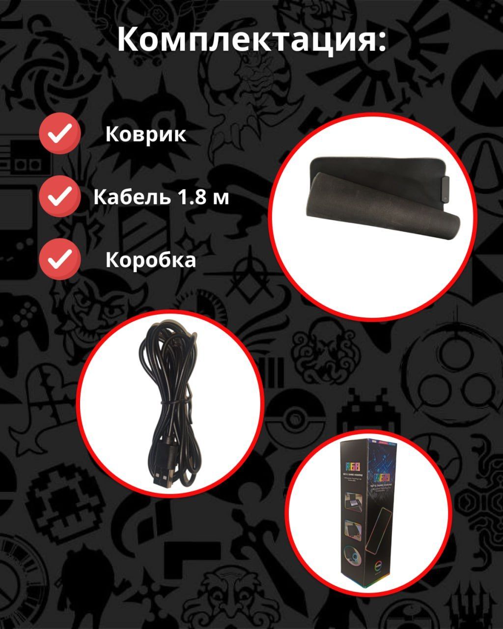 Коврик, Коробка, Кабель 1.8 м.