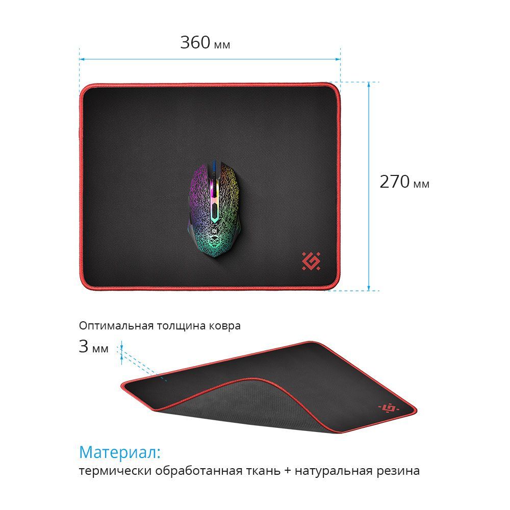 Игровой коврик для мыши Defender Black М, средний 360x270x3 мм, ткань+резина