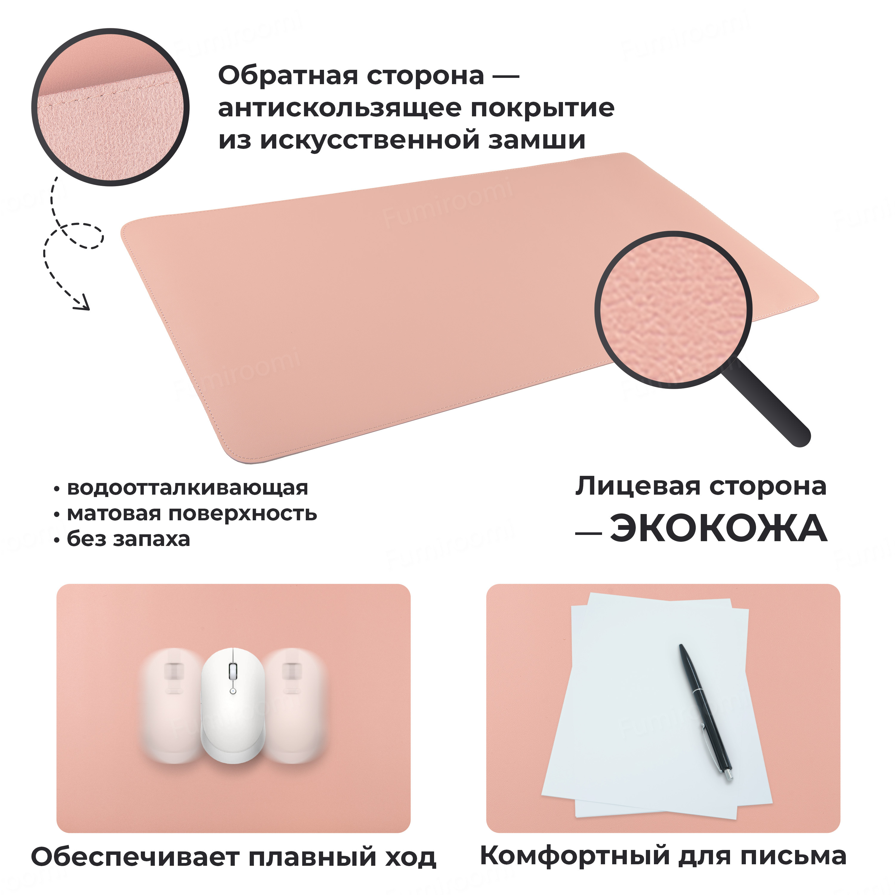 Игровой коврик для мыши FUMIROOMI Коврик для ноутбука, XXL, розовый
