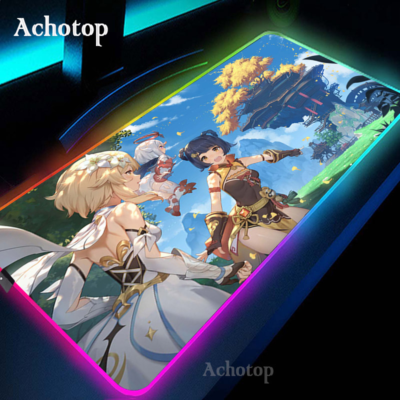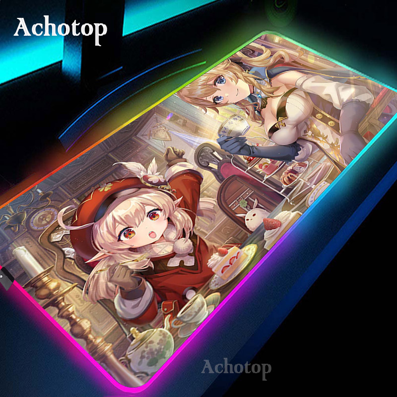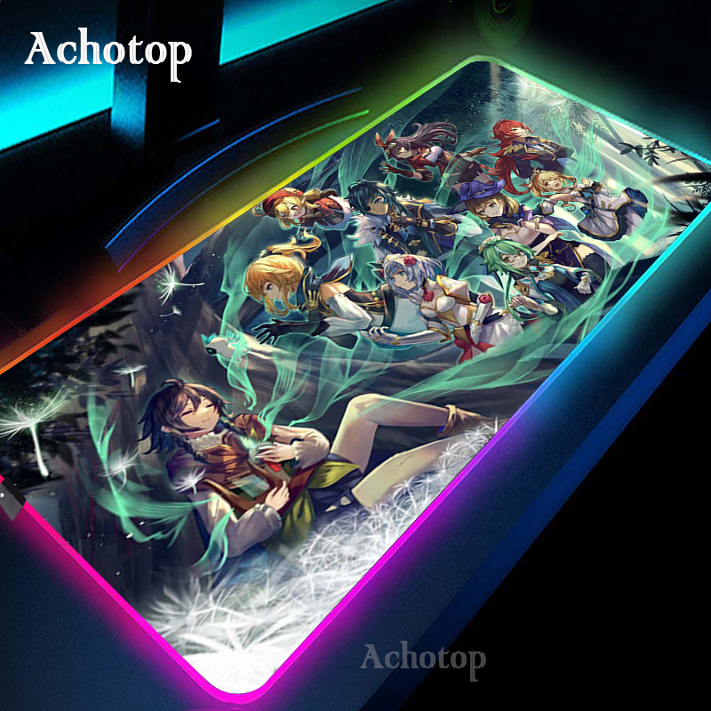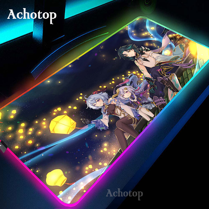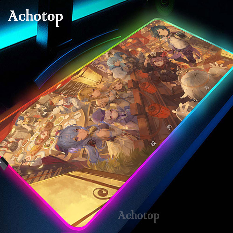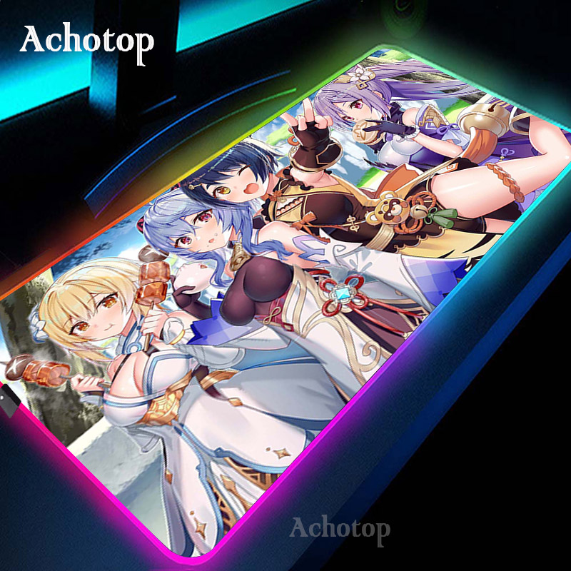 Игровой коврик для мыши Genshin Impact компьютерный коврик для мыши RGB большой коврик для мыши геймер XXL коврик для мыши Коврик для мыши ПК настольный коврик с подсветкой
