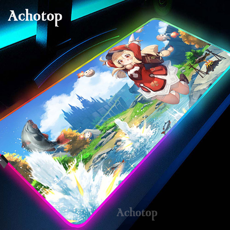Игровой коврик для мыши Genshin Impact, компьютерный коврик для мыши RGB, большой милый коврик для мыши Kawaii, игровой коврик для мыши XXL, коврик для мыши, Настольный коврик для ПК