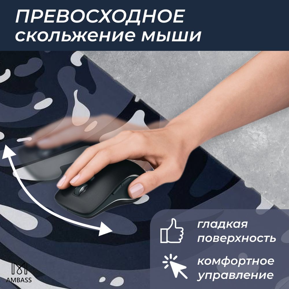 Игровой коврик для мыши, коврик для мыши (001) AMBASS, компьютерный, большой, антискользящий 400х900х3 мм