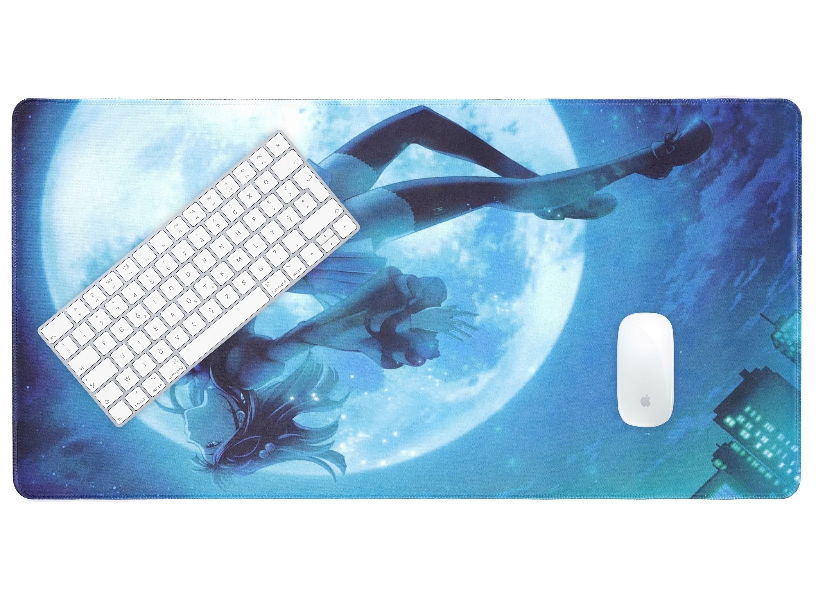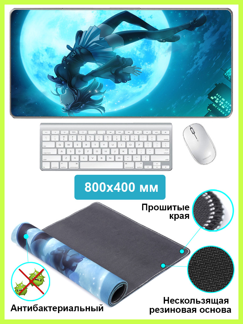 Игровой коврик для мыши, коврик для мыши WANTU, компьютерный, большой, антискользящий Аниме Луна 400x800 мм