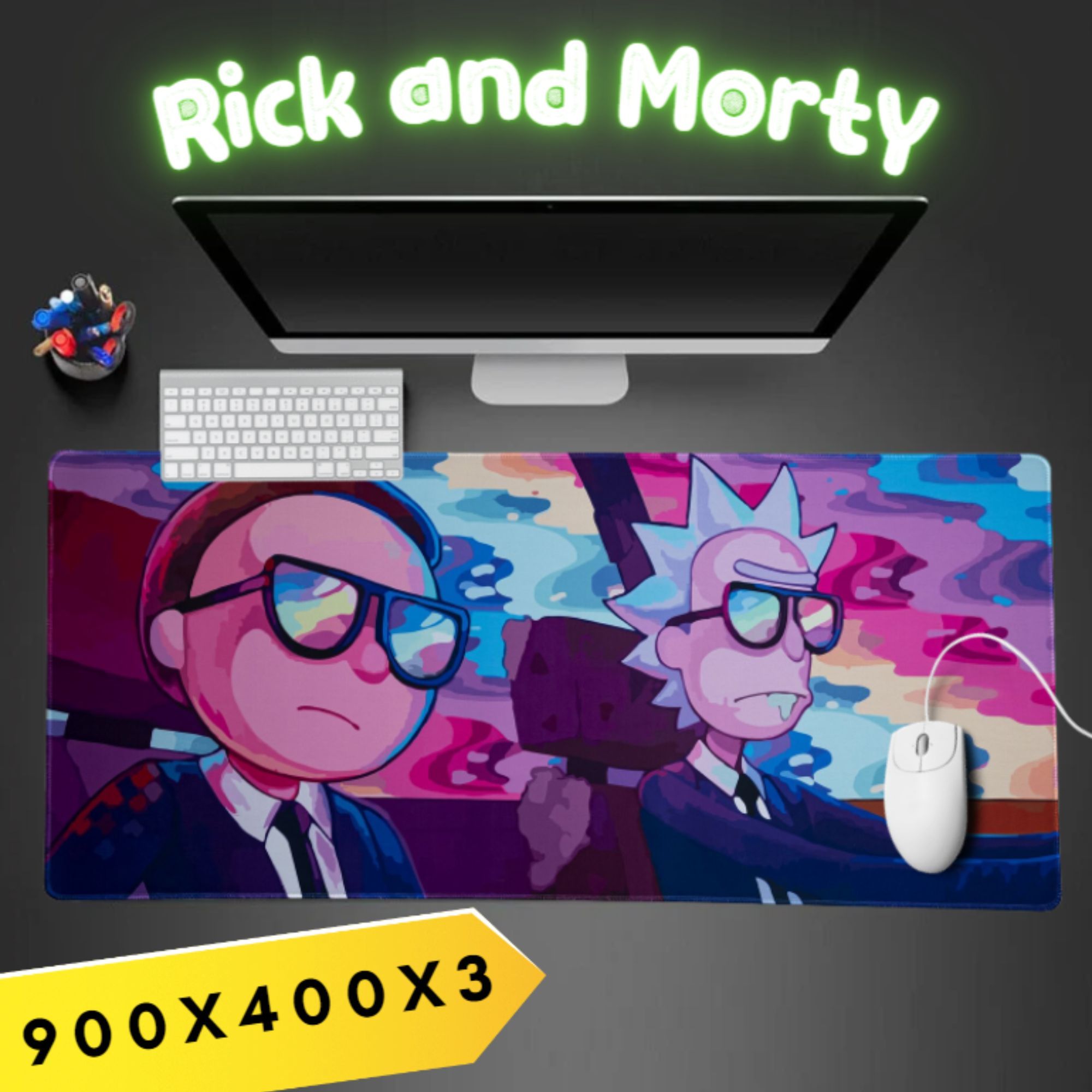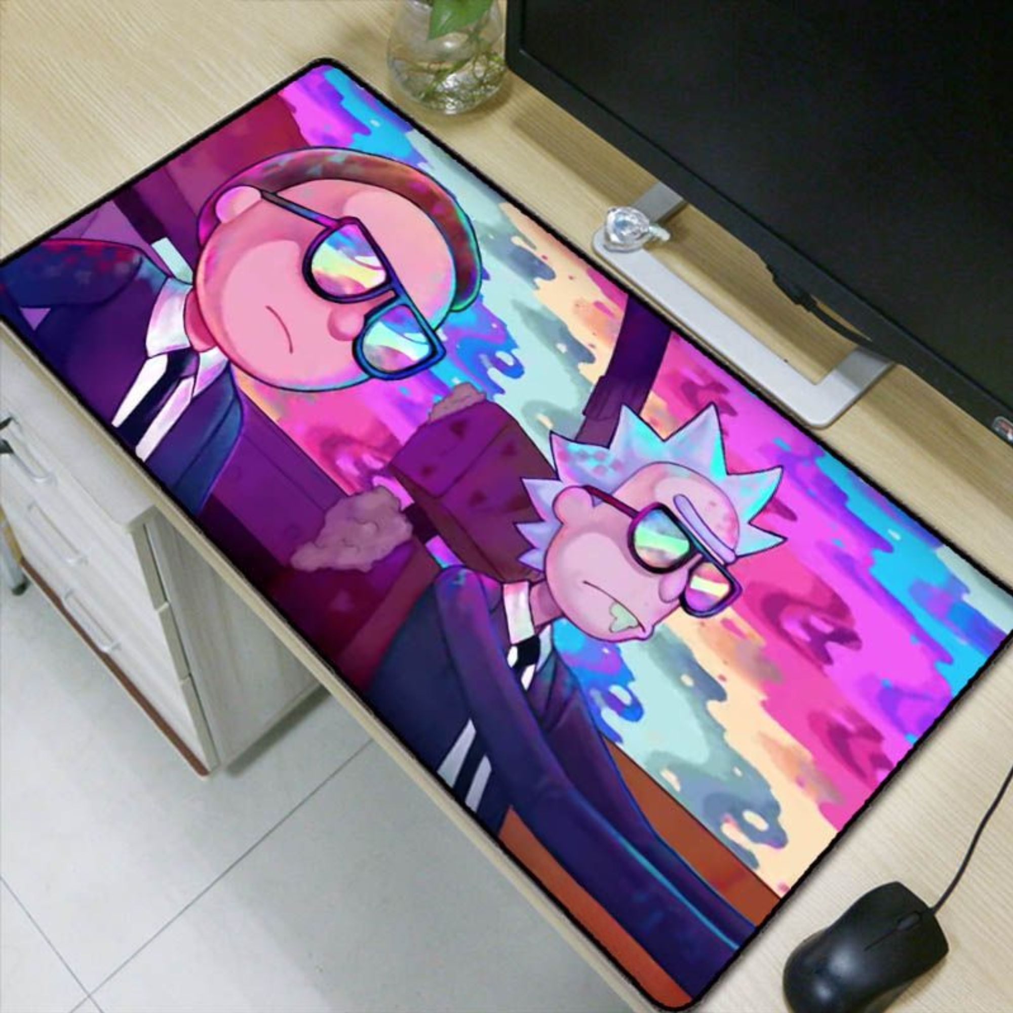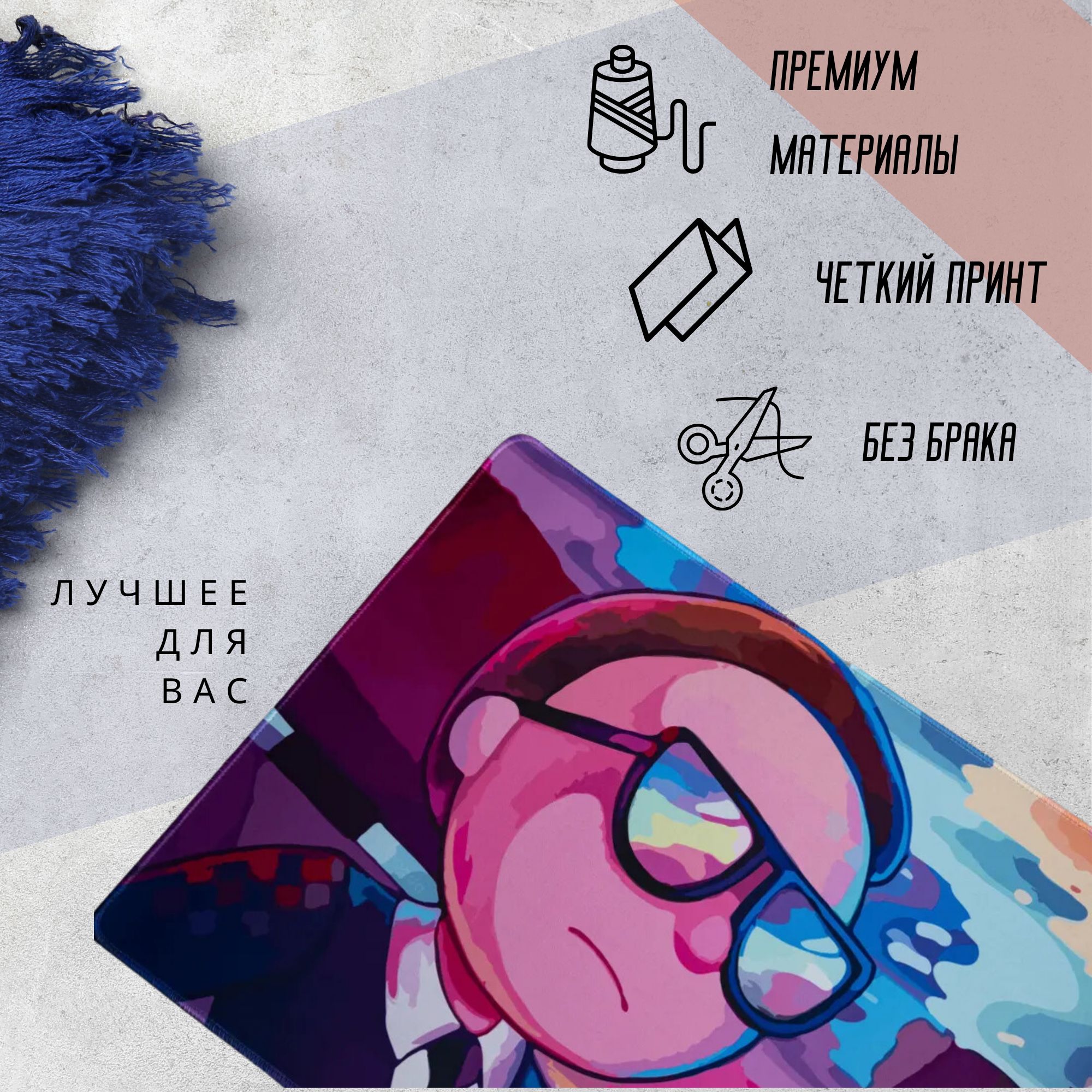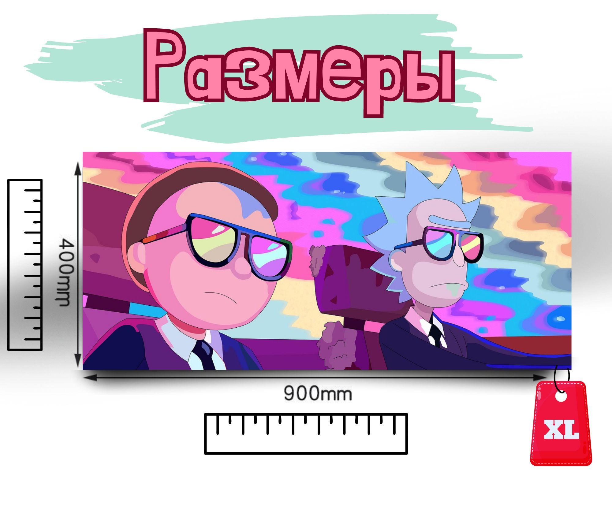 Игровой коврик для мыши OEM Большой коврик Рик и Морти , XXL, розовый