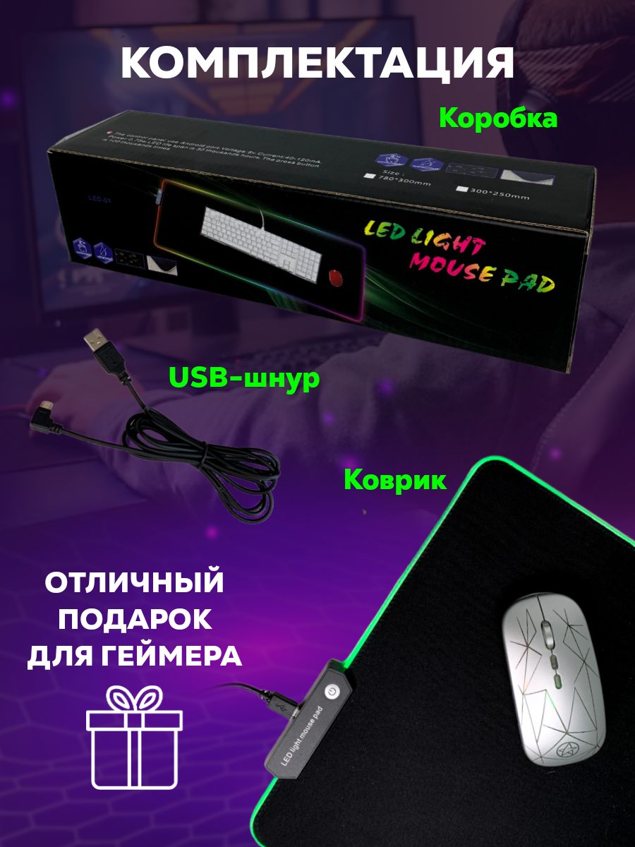 Светящийся RGB-коврик для мыши - выбор настоящих геймеров и ценителей качества. Коврик для мыши игровой с подсветкой станет отличным подарком на день рождения, без повода, просто так, для тех, кого вы цените и любите. Коврик для мышки с RGB Led-подсветкой отлично идет в подарок сыну, мужу, внуку, внучке, подруге, любимому человеку, любителю компьютерных игр.