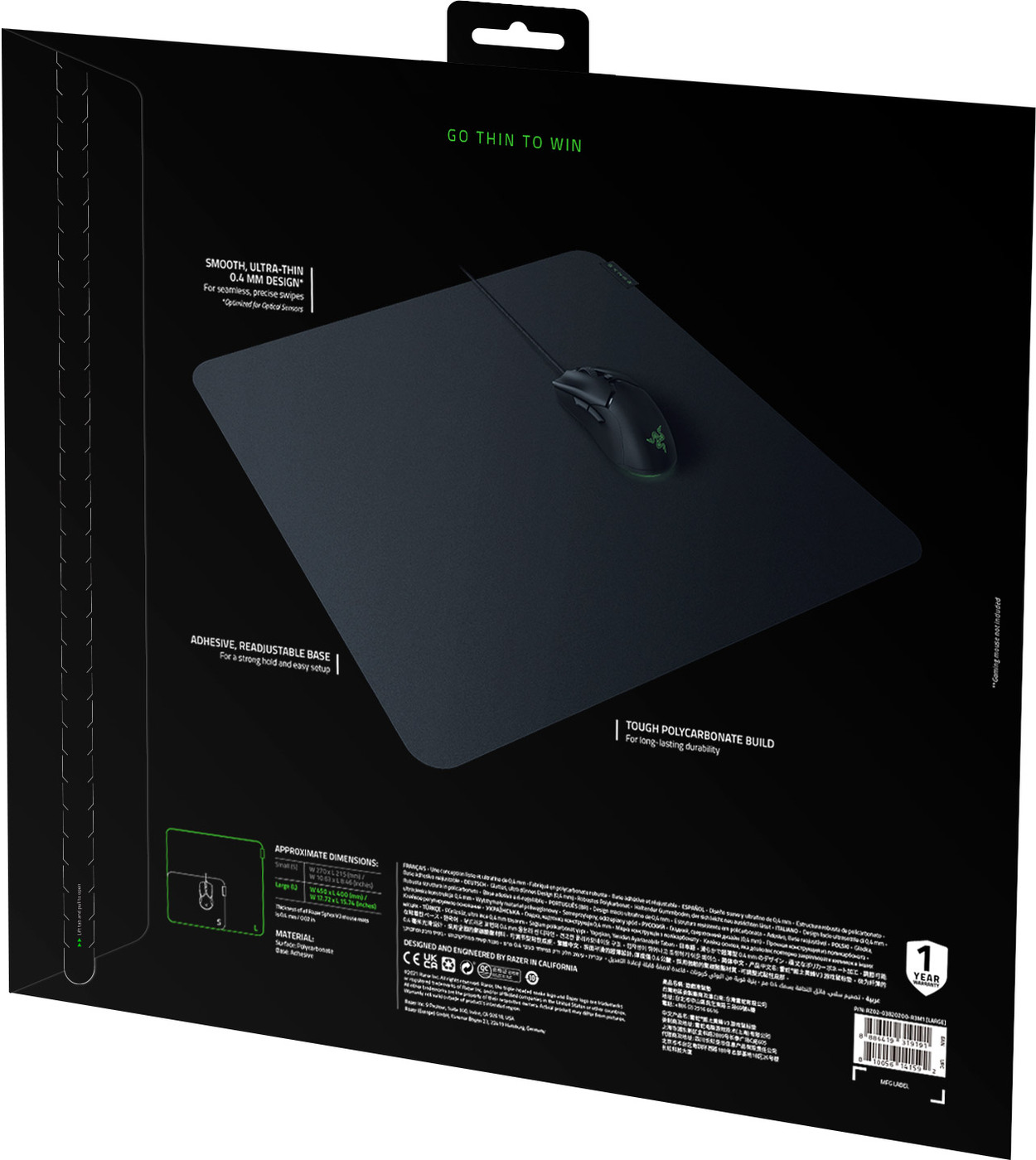 1. Razer Sphex V3 толщиной 0.4 мм, что на 20% тоньше, чем его предшественник, Razer Sphex V2.