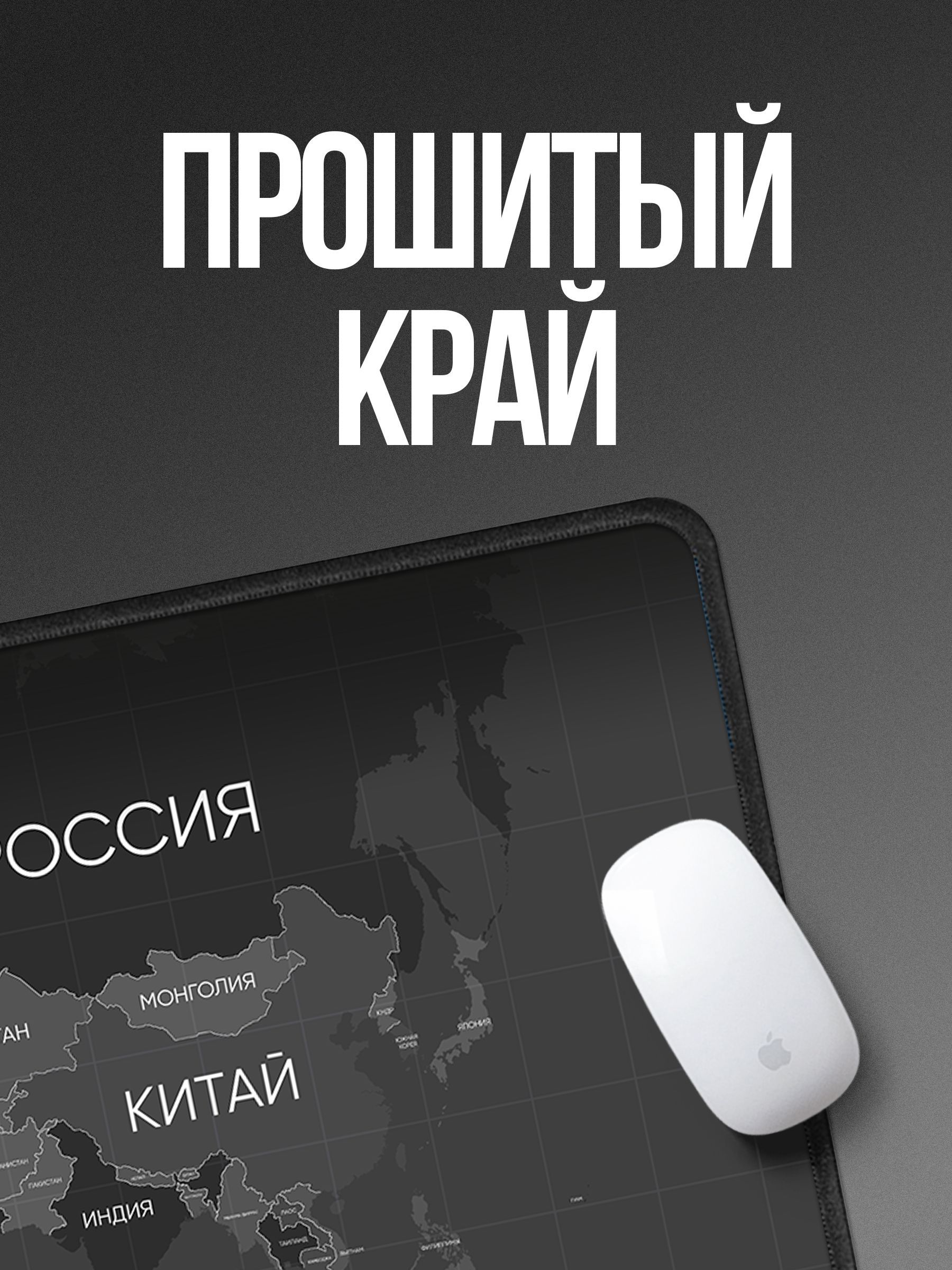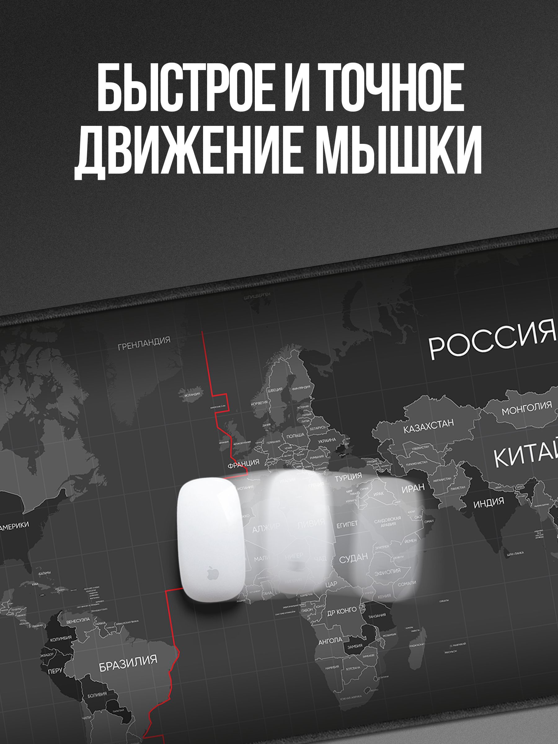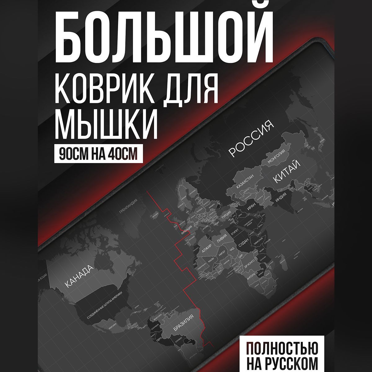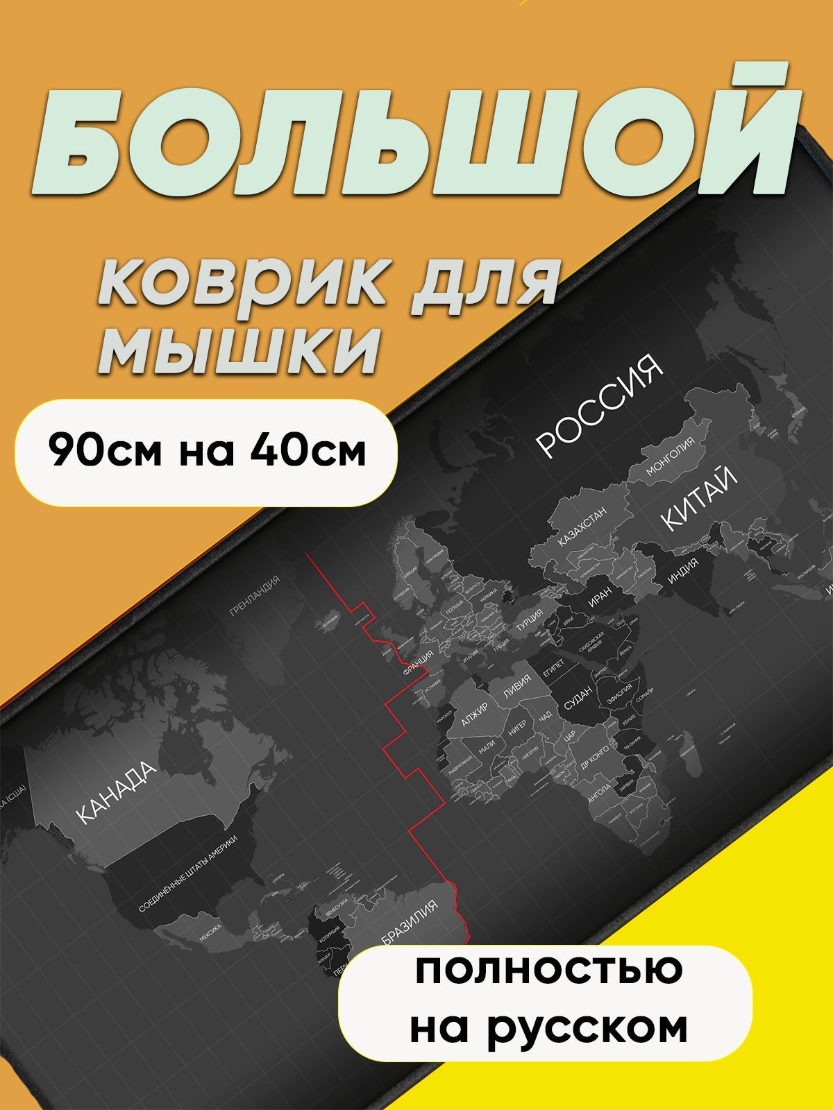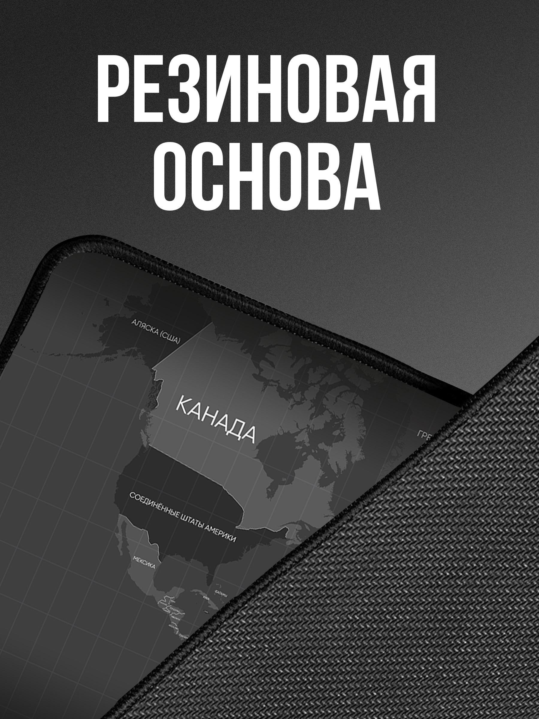 Игровой коврик для мыши RAZOM Карта мира на русском языке, XXL, серый, черный