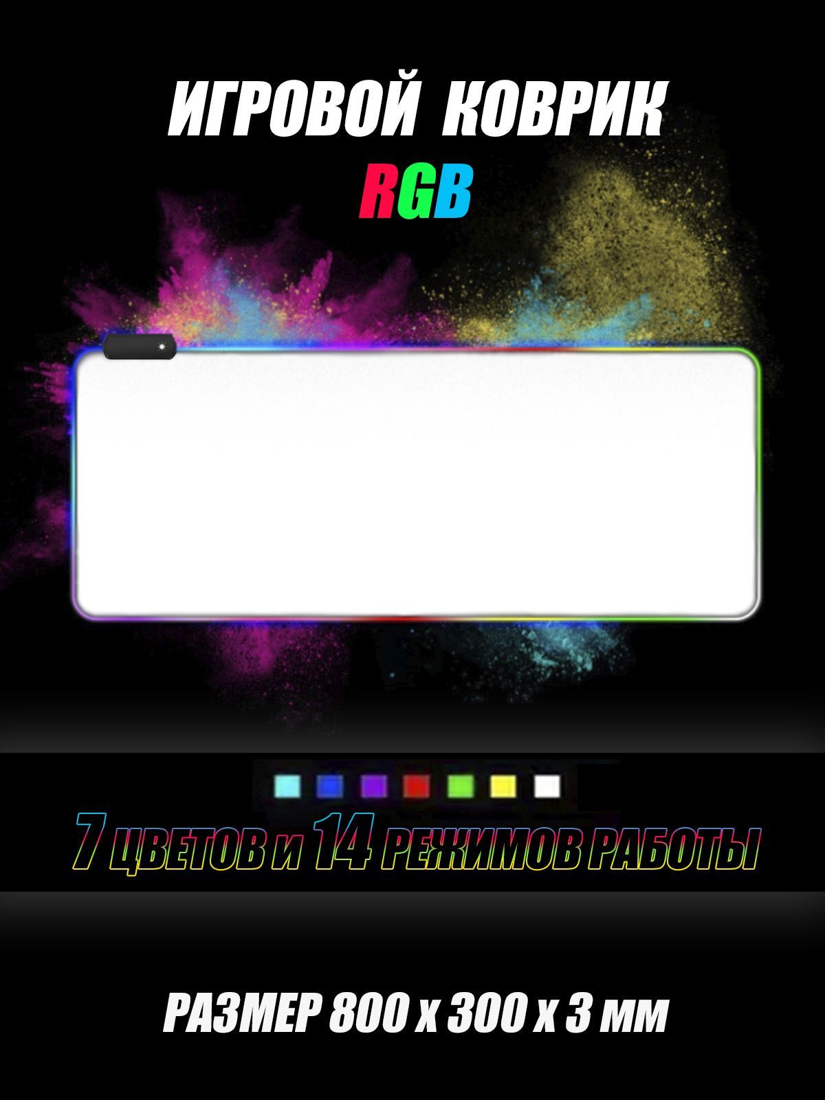 Описание: Игровой коврик для мыши и клавиатуры с RGB подсветкой. Коврик подключается через USB к компьютеру или ноутбуку. RGB подсветка превращает коврик в настоящее украшение интерьера, отлично дополнит стол геймера и т.д. Коврик имеет 7 цветов свечения, а так же различные, динамические режимы подсветки. Выполнен из высококачественных материалов, а так же имеет прорезиненную поверхность, что бы не скользить по столу. Верхняя поверхность RGB коврика выполнена из материала, который обеспечивает превосходное скольжение мышки. Коврик придет в качественной упаковке. Это отличный подарок или аксессуар для людей увлекающихся компьютерными играми, блогингом, стримеров и т.д.