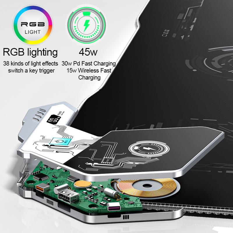 Игровой коврик для мыши с беспроводной зарядкой, RGB подсветка для мыши, 15 Вт, 10 регулируемых режимов, очень большой коврик для мыши для игр, MacBook, ПК, ноутбука
