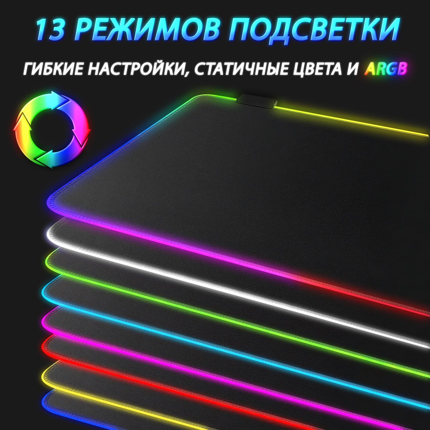 Этот игровой коврик для мыши имеет 14 режимов освещения. 7 режимов статического освещения, чередующаяся волна, синхронизирующая волна, чередующаяся вспышка, чередующееся изменение красного цвета, выключение света, синхронизация дыхания, альтернативное дыхание. Это не слишком отвлекает, когда вы играете/работаете.