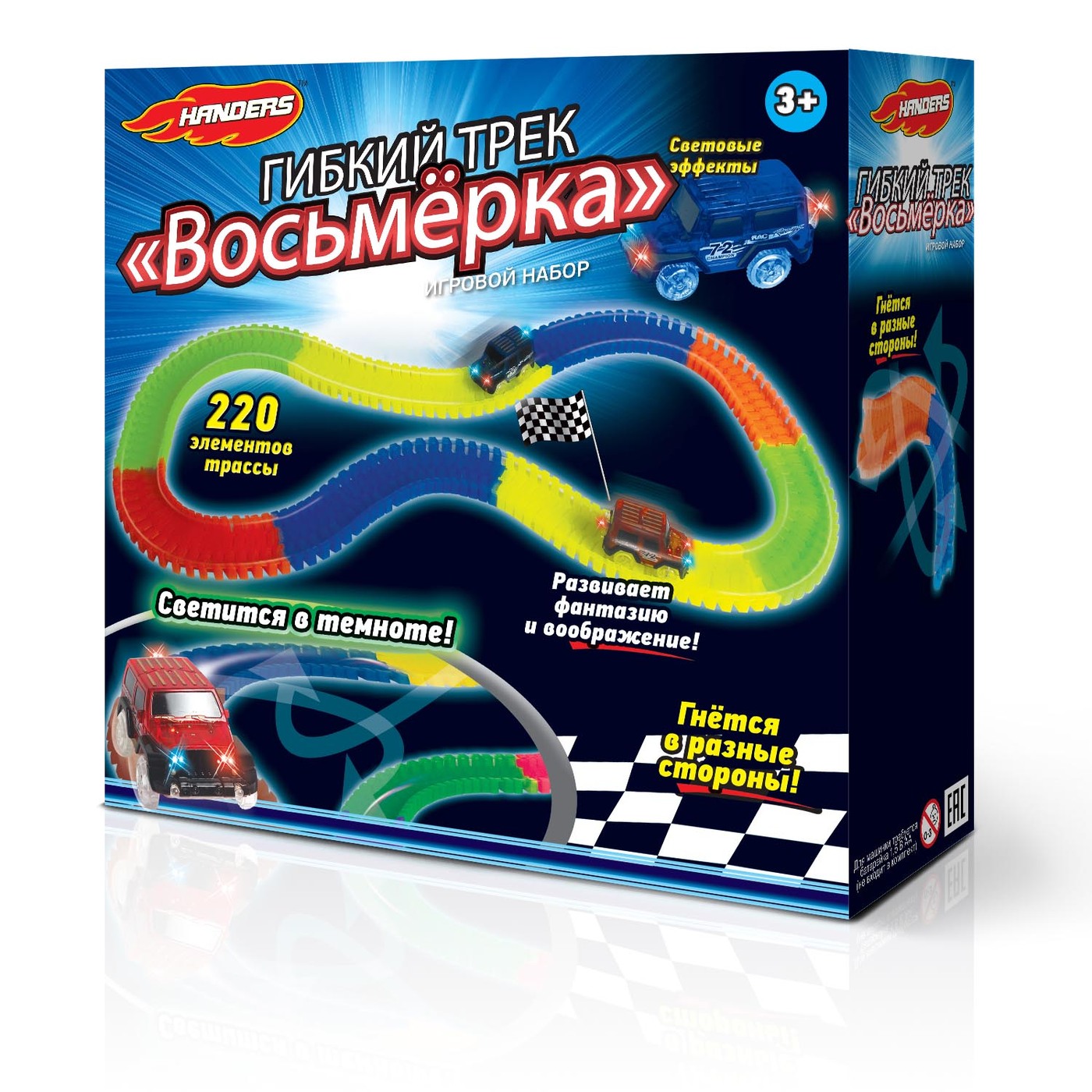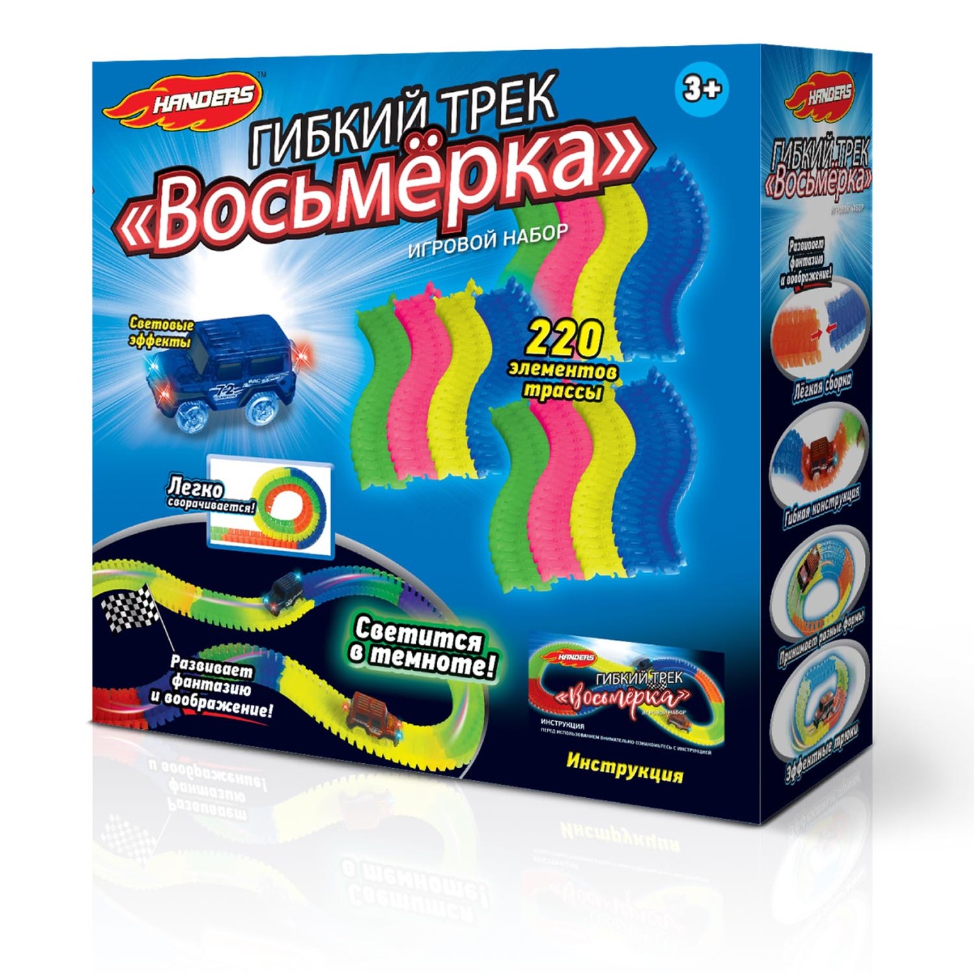 Игровой набор Handers "Гибкий трек: Восьмёрка" (светящийся трек, длина 286 см, 220 деталей, машина)