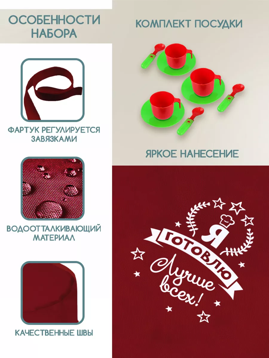 Комплектация набор посуды; Колпак - 1 шт; Фартук детский 1шт
