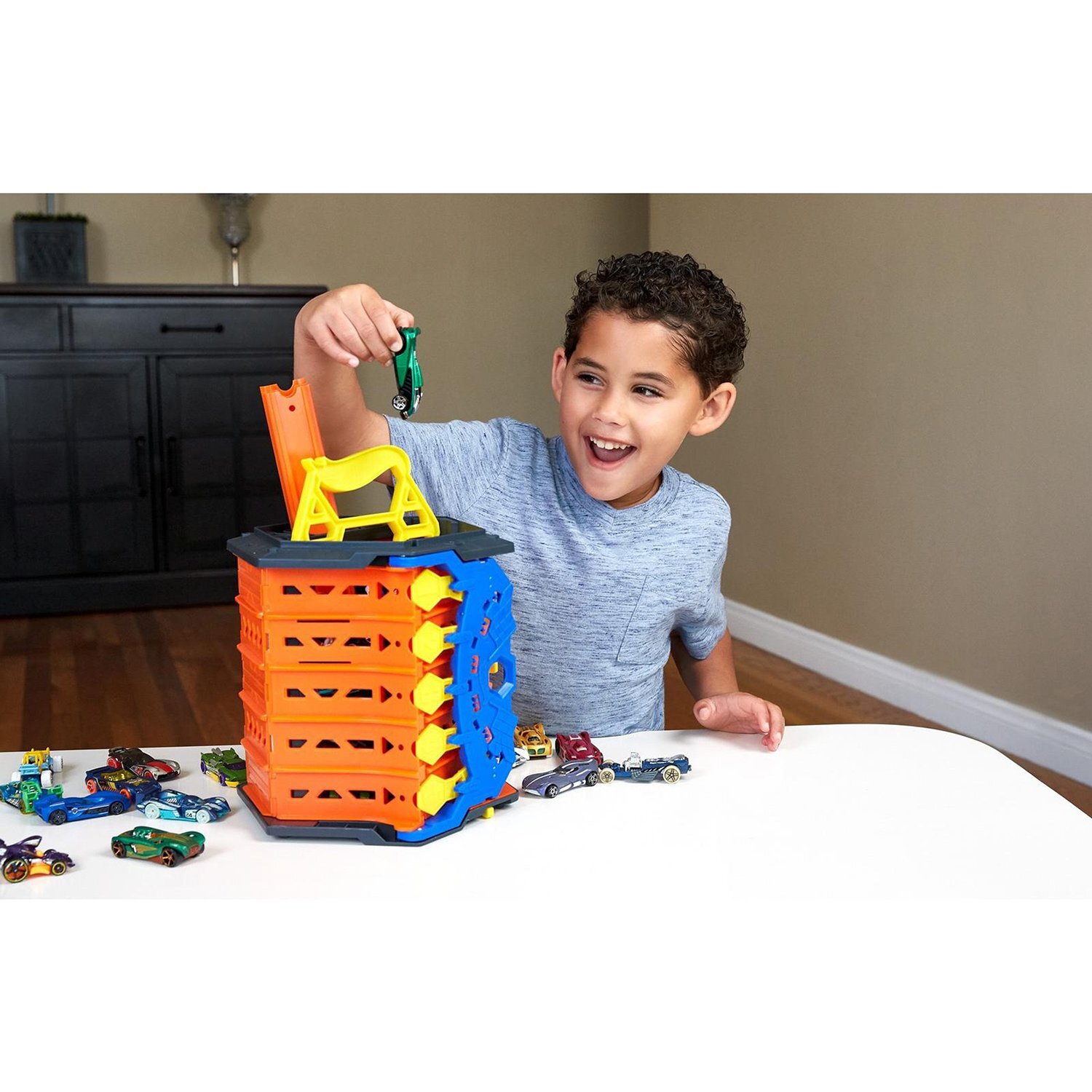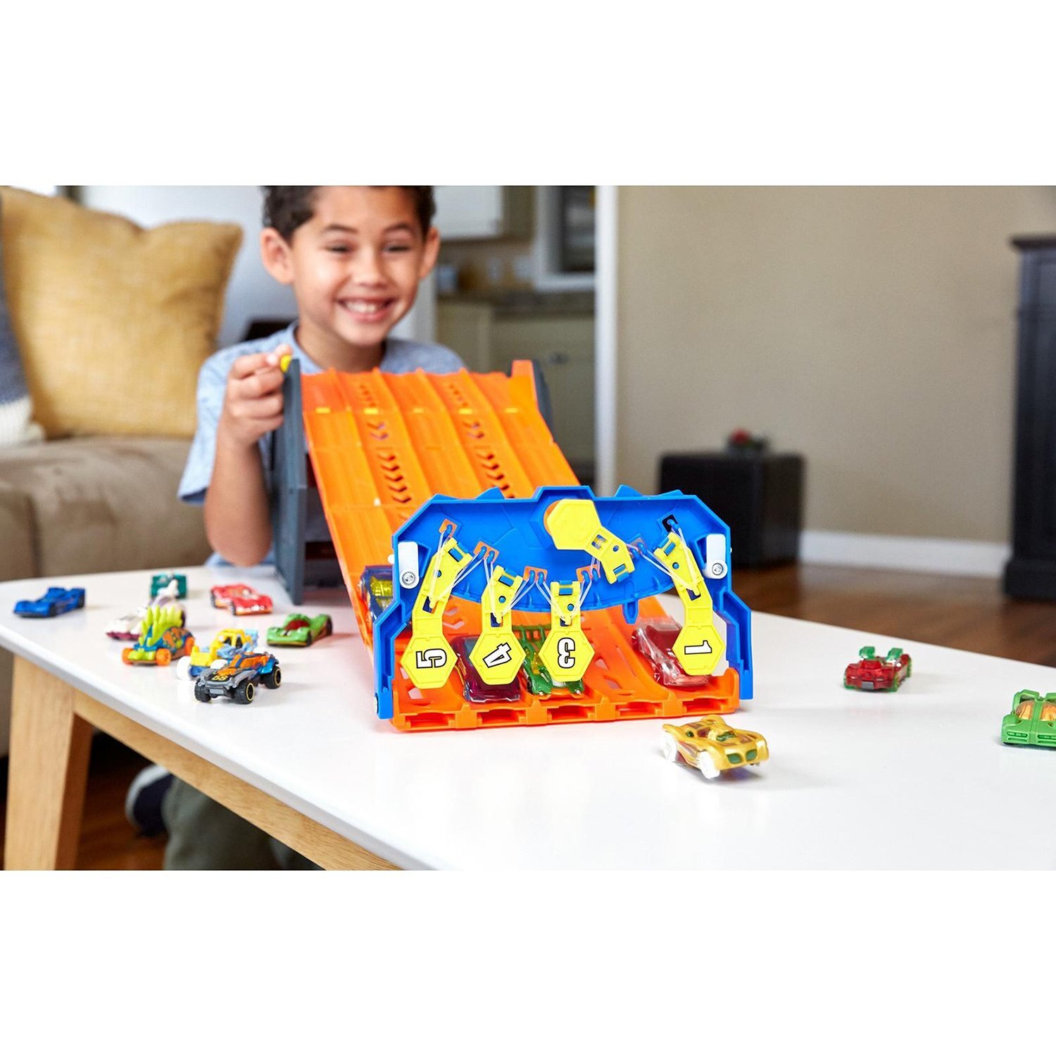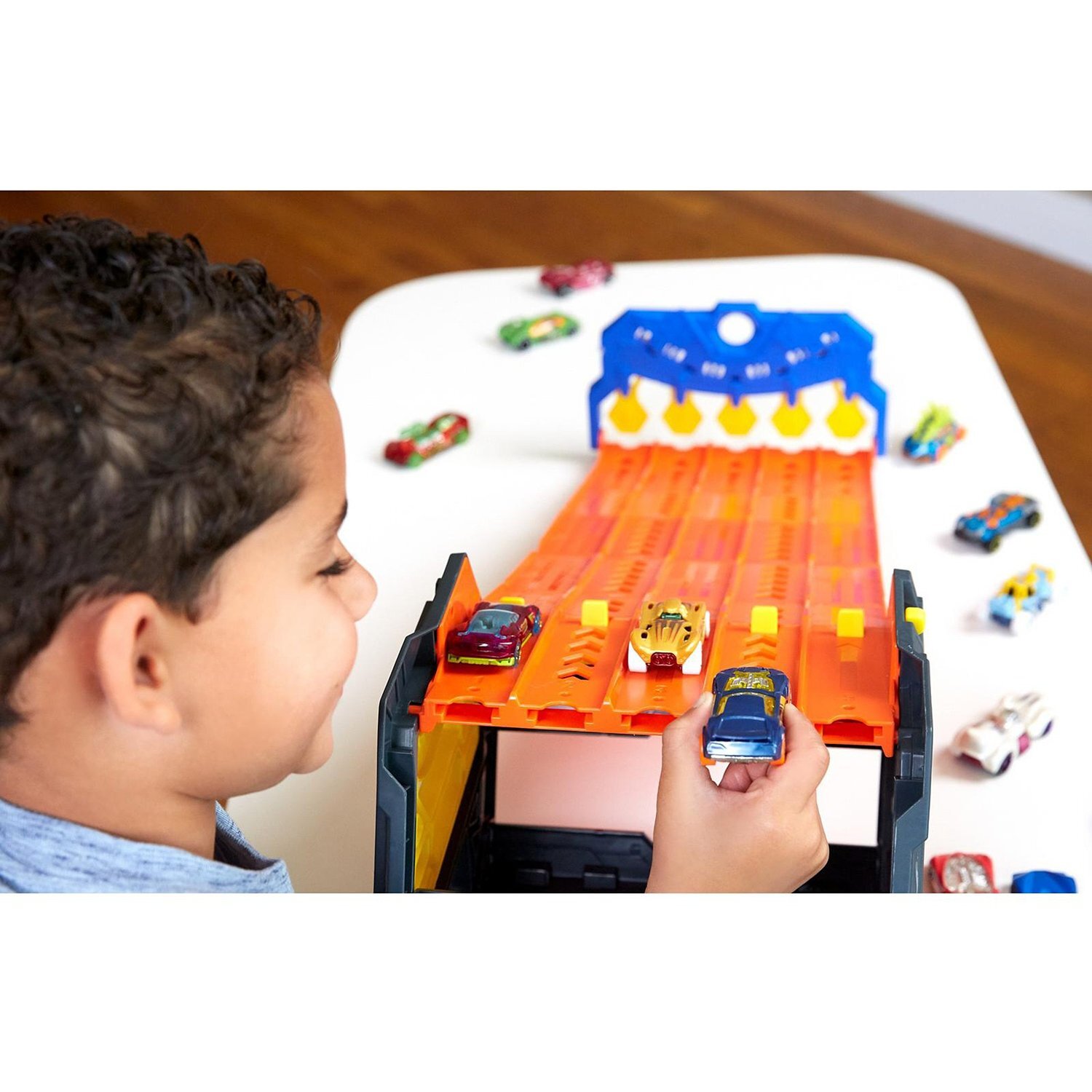 Описание: Портативный автотрек от Hot Wheels - это идеальное решение 2-в-1 для игры и хранения машинок.Стартовый механизм обеспечит одновременный запуск всех участников, поэтому никто не сможет получить несправедливого преимущества.В свернутом состоянии он превращается в удобный контейнер, в который можно поместить до 80 литых автомобилей Hot Wheels.Победившая машинка откидывает финишные ворота с номером своей дорожки. Больше не будет никаких споров, о том, кто пришел к финишу первым!Игры с наборами Hot Wheels стимулируют двигательную активность ребенка, развивают ловкость и скорость реакции, а также пробуждают интерес к механике.