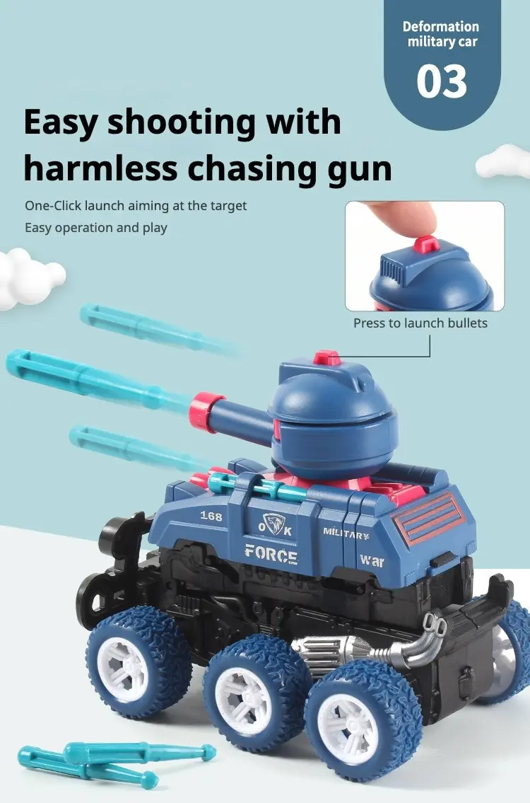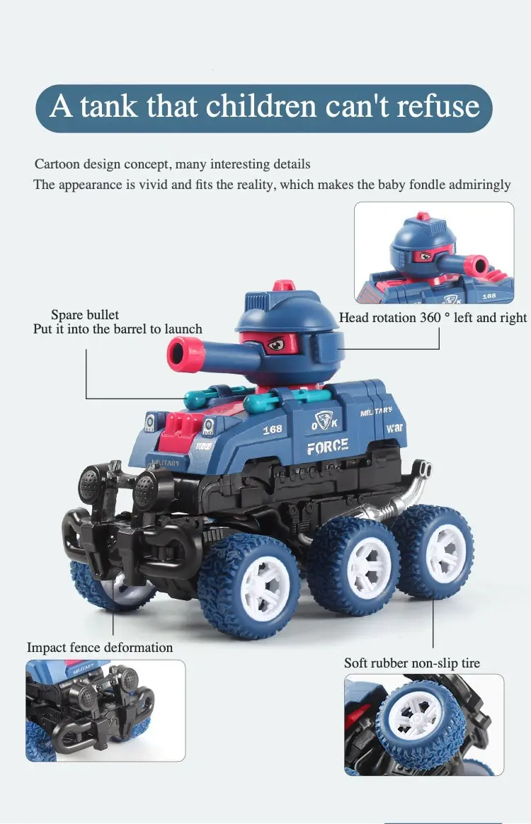 Продвижение по инерции. Передний конец сталкивается с роботом. Передняя часть вращается на 360 ° и может запускать ракеты.