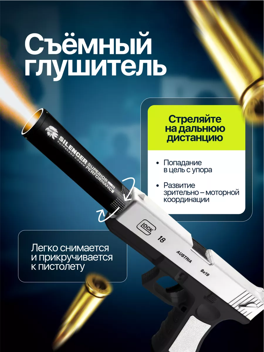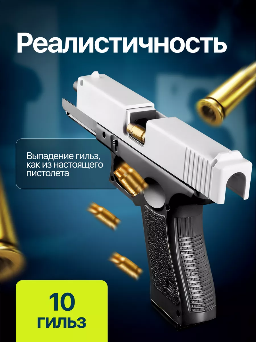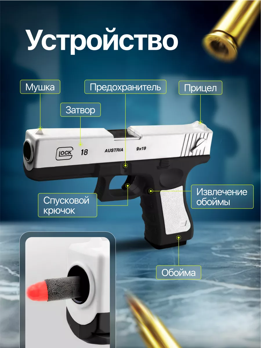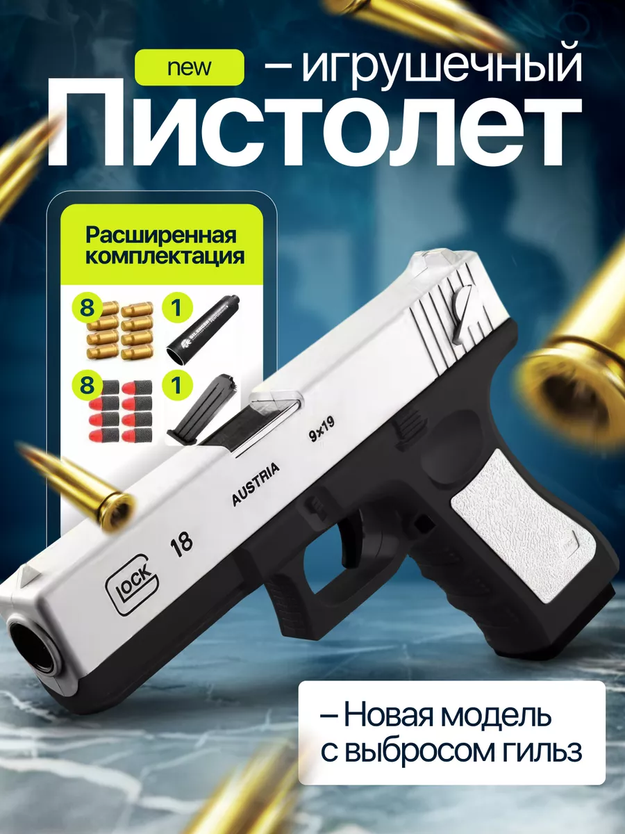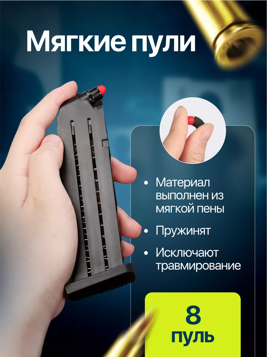 Игрушечный пистолет с мягкими гильзами пульками