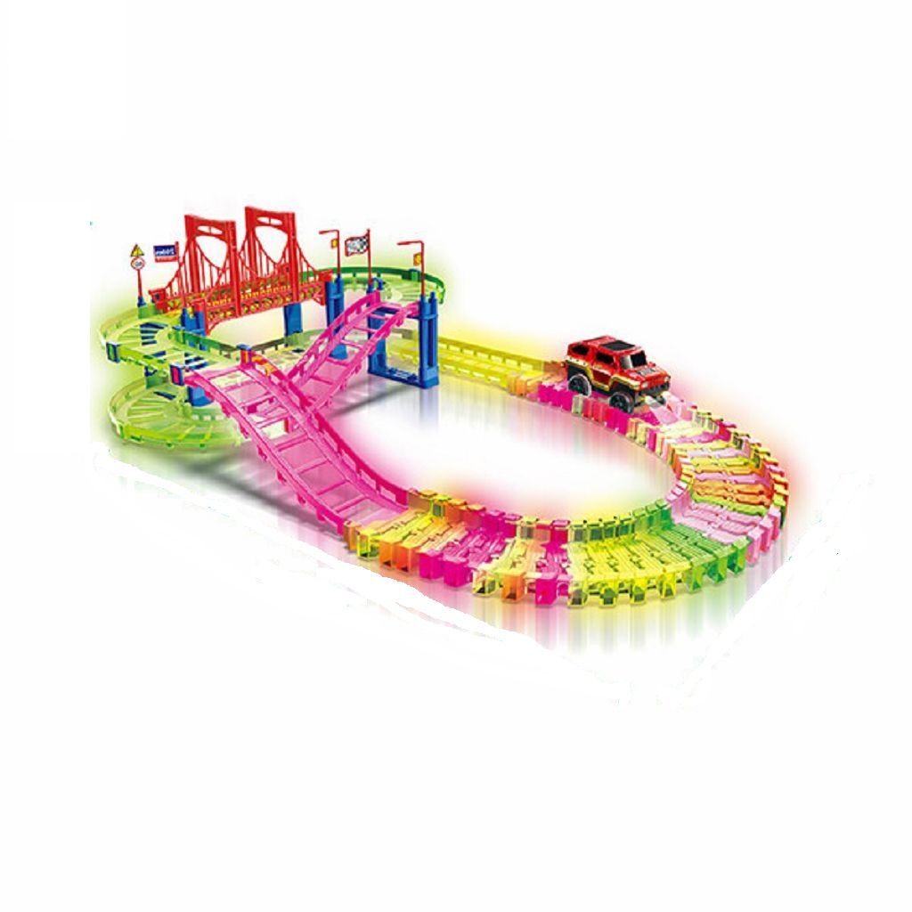 Игрушечный трек понравится вашему малышу тем, что может светиться в темноте (для работы нужны батарейки) и сделает игру еще увлекательнее и интереснее. Изготовлен из качественного пластика