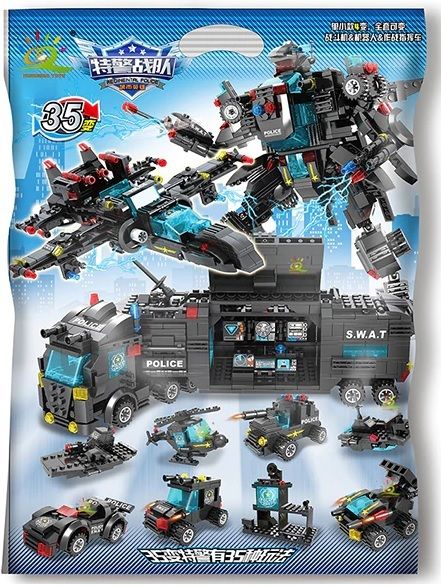 Описание: Отличная игрушка-конструктор для детей и даже взрослых! Данный набор выполнен из экологически чистого пластика и не содержит в себе вредных веществ. Игрушка имеет небольшие строительные блоки. В наборе 750 детали, из которых можно собрать полицейскую машину, самолет и робота или 8 разных небольших моделей техники, также в комплекте имеются 4 фигурки полицейских. Конструктор прививает ребенку такие качества как усидчивость, внимательность, терпение при сборке моделей, а также развивает мелкую моторику рук и фантазию. Конструктор поможет приятно провести время в кругу семьи или друзей при сборке деталей. Ваши дети с удовольствием возьмутся за сборку моделей полицейской техники, а после сборки модельками можно еще и поиграть. Собирая конструктор ребенок почувствует себя маленьким инженером, воссоздающим своими руками катера, машины, вертолеты, робота или одну большую полицейскую машину. Данный конструктор является замечательным подарком на День рождения или любой другой праздник Вашему ребенку, а также друзьям, пополнит коллекцию собранных моделей на Вашей полке, либо коллекцию игрушек Вашего ребенка.