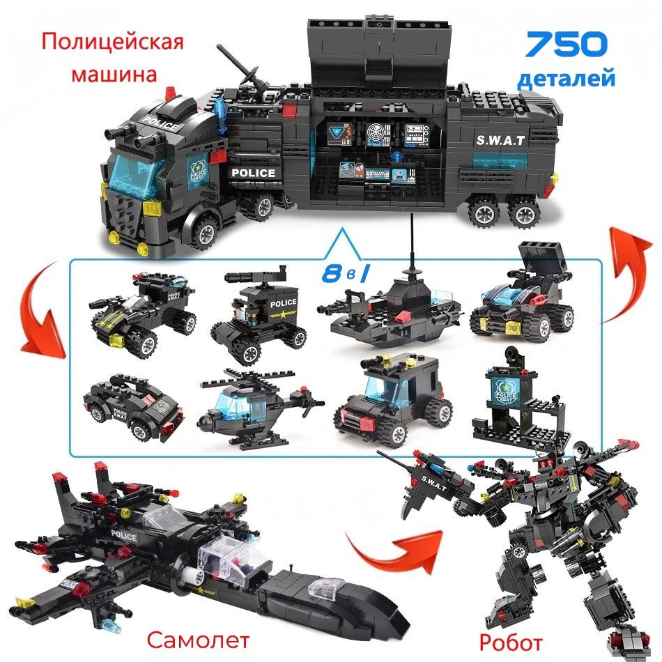 Игрушка-конструктор "Полицейская машина, робот и самолет"/ игровой набор 8 в 1