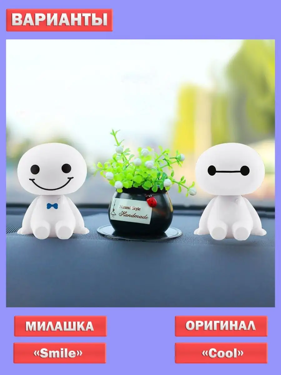 Описание: Мультяшка робот БэйМакс - самая милая и позитивная аниме игрушка. Понравится детям: мальчикам и девочкам, а также взрослым всех возрастов. Это прекрасный аксессуар для автомобиля, который украсит салон любой машины. Болванчик довольно крупный, изготовлен из мягкого пластика с качающейся головой на пружинке и имеет потрясающую улыбку. В комплекте имеется двухсторонняя липучка для крепления игрушки на приборную панель вашего автомобиля. Возьмите веселую игрушку с собой в дорогу или используйте как интерьерную декоративную фигурку для оживления детской комнаты, гостиной, прихожей или компьютерного столика. Поставьте у себя в офисе, в кафе или на ресепшен. Используйте как украшение на свадьбу или как украшение торта. Он не оставит равнодушным ни одного вашего гостя! Это оригинальный сувенир для дорогого вам человека, подарок вашему любимому мужчине, дорогому мужу или парню на день рождения, новый год или 23 февраля. Обрадуйте ваших родных, папу, маму, бабушку или детей на 1 сентября всем придется по душе это веселая игрушка. Вы можете приобрести болванчик с потрясающей улыбкой в исполнении Smile или с классическим выражением, как из мультика, в исполнении Cool.