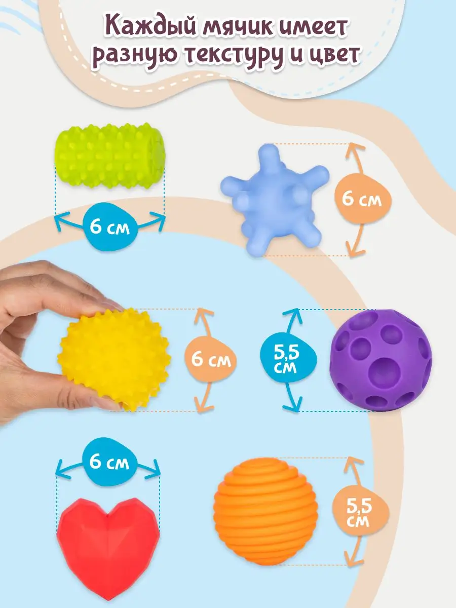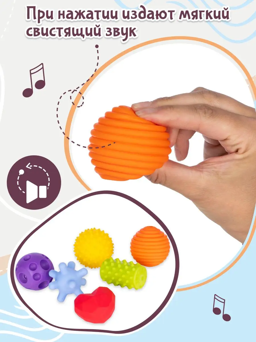Комплектация тактильные сенсорные мячики 6 штук; Игрушки для ванной 6 штук; набор игрушек для ванной 6 штук; Массажные мячики 6 штук; шарики для массажа 6 штук