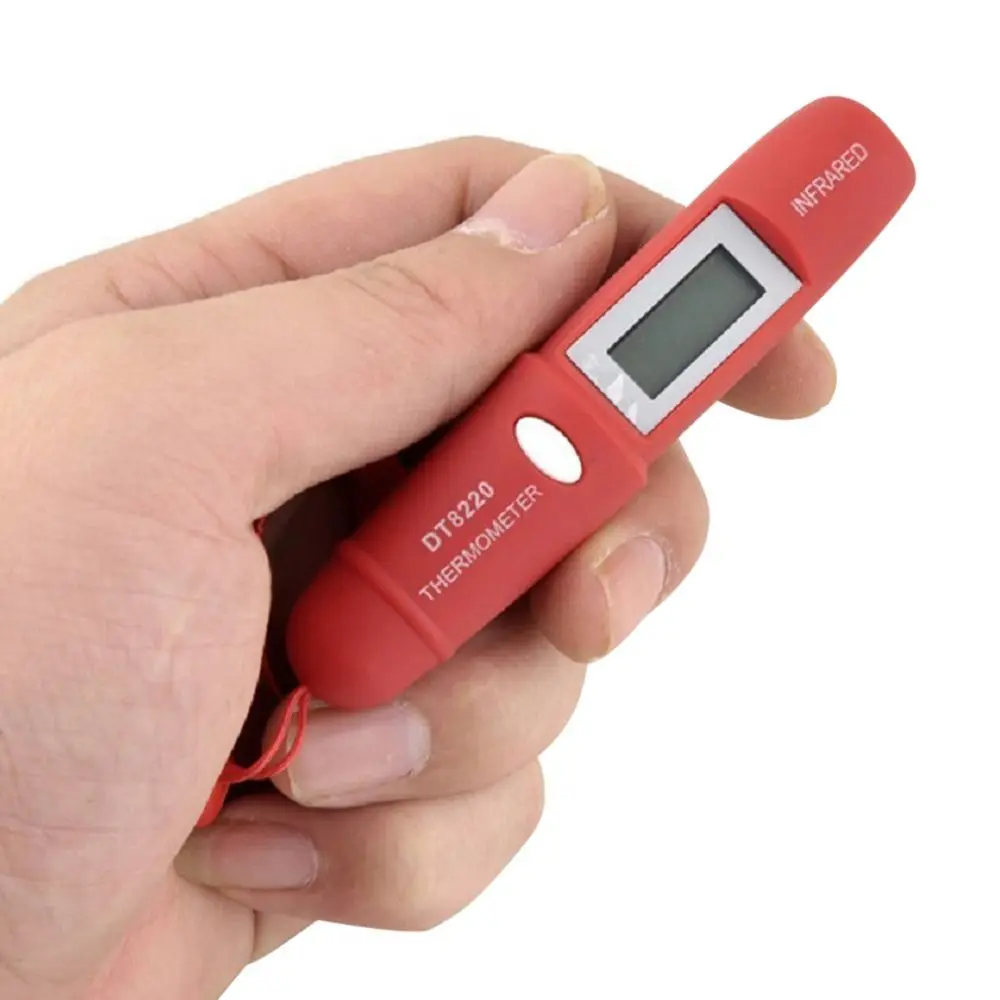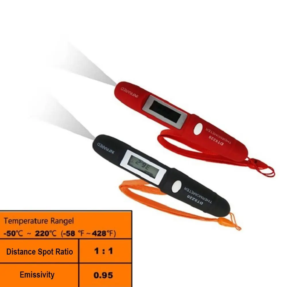 Материал: АБС-пластик Цвет: черный Светодиодный выбор освещения Функция удержания данных Модель: DT8220 Тип: форма ручки Подходит для: домашнего использования термометр Диапазон температур: от-50 до 220 градусов Цельсия/ -58 градусов по Фаренгейту до 428 градусов по Фаренгейту Точность: +/-2% или 2 по Цельсию Повторяемость: 1% или 1 Цельсия Время отклика: Менее 0,8 Секунды Излучение: 0,95 фиксированный Рабочая среда: 0-50 градусов Цельсия Относительная влажность: 10% -95RH без конденсации Температура хранения: от-20 до 50 градусов Цельсия Мощность: 2 шт. * AG13 кнопки (1,5 В/каждый) Коэффициент расстояния: 1: 1 Рекомендуемое расстояние измерения: от 10 мм до 80 мм Разрешение: 0,1 Цельсия или 0,1 Фаренгейта Дополнительные функции: 1. Автоматическое выключение через 15 секунд 2. Выбор Фаренгейта/Цельсия 3. Индикация низкого заряда батареи Посылка Содержимое: 1 * ручка термометр 2 * AG13 батареи 1 * Руководство пользователя Этот продукт не подходит для измерения температуры поверхности тела, лба, ребенка! Только вышеуказанное посылка содержание, другие продукты не включены. Примечание: светильник съемки и различные дисплеи могут привести к тому, что цвет товара на картинке немного отличается от реального. Допускается погрешность в измерениях +/- 1-3 см.