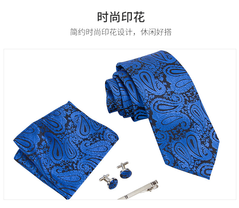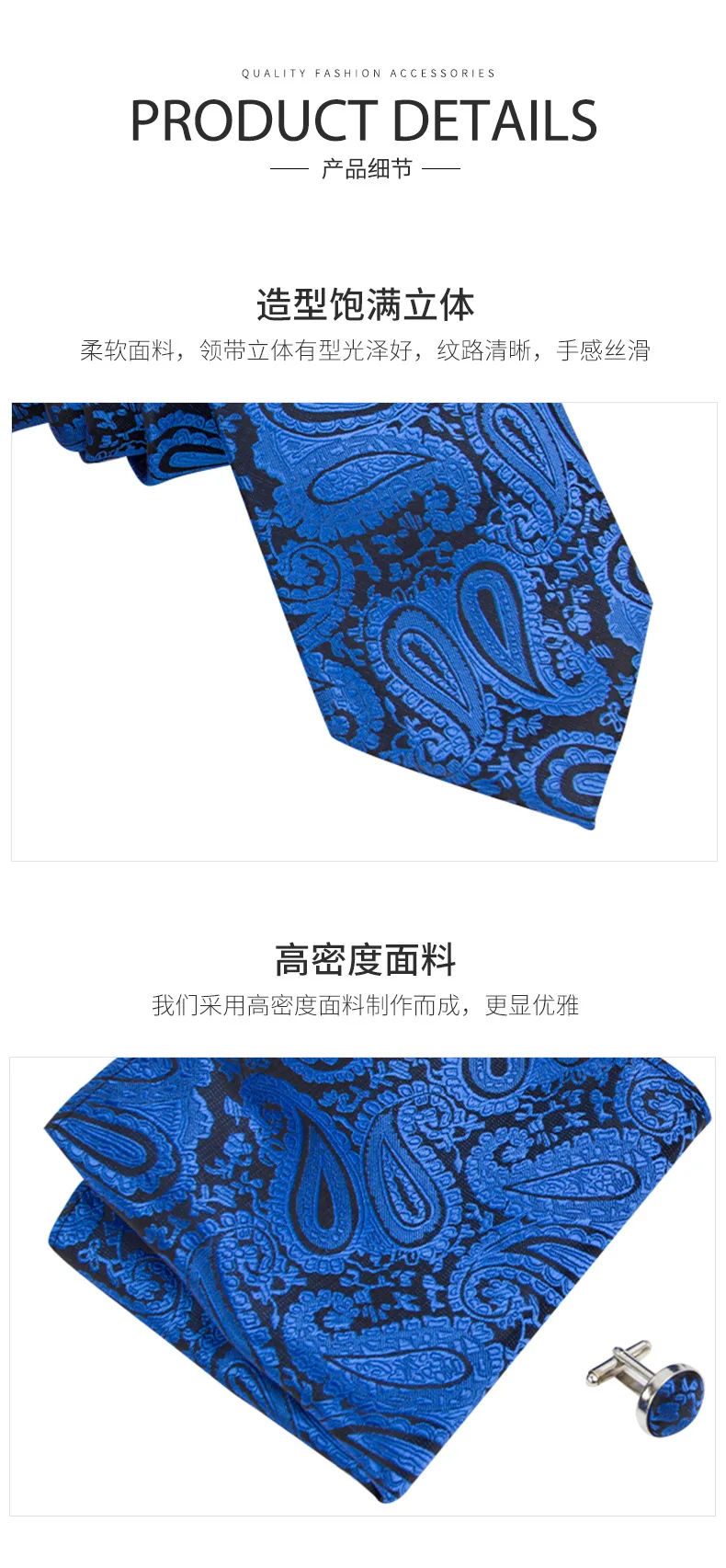Ikepeibao королевский синий мужской комплект с галстуком Пейсли с цветочным рисунком, наборы металлических запонок и зажимов в полипропиленовом пакете