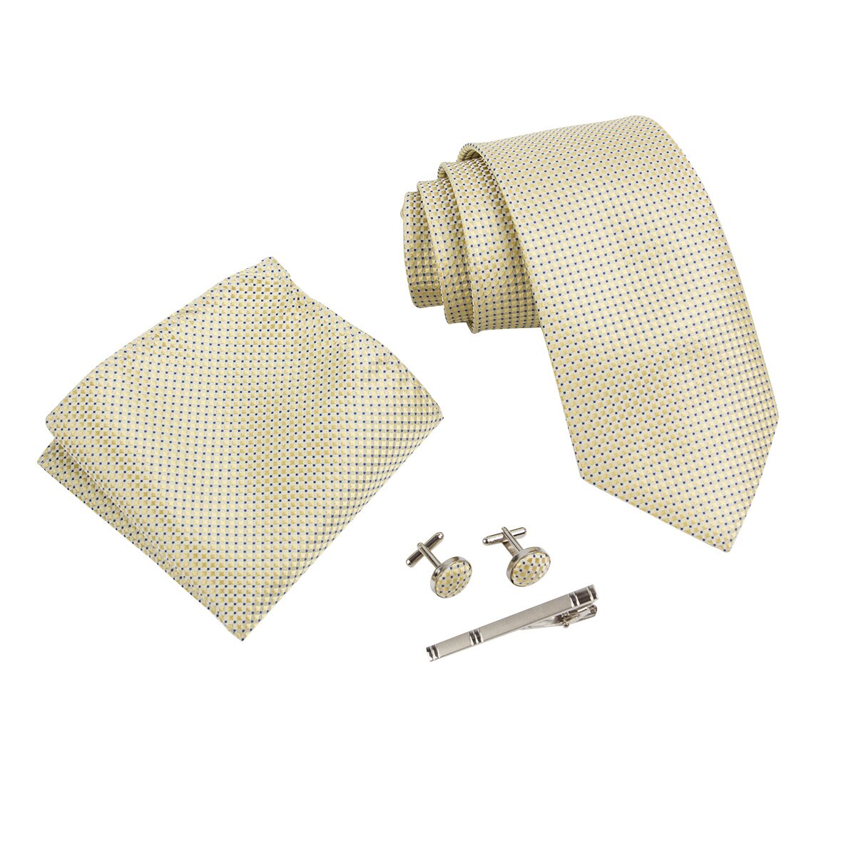 Ikepeibao мужские комплекты галстуков в клетку в желтые точки носовой платок с металлическим зажимом для запонок серебристо-черная рубашка аксессуары подходят для свадьбы много цветов