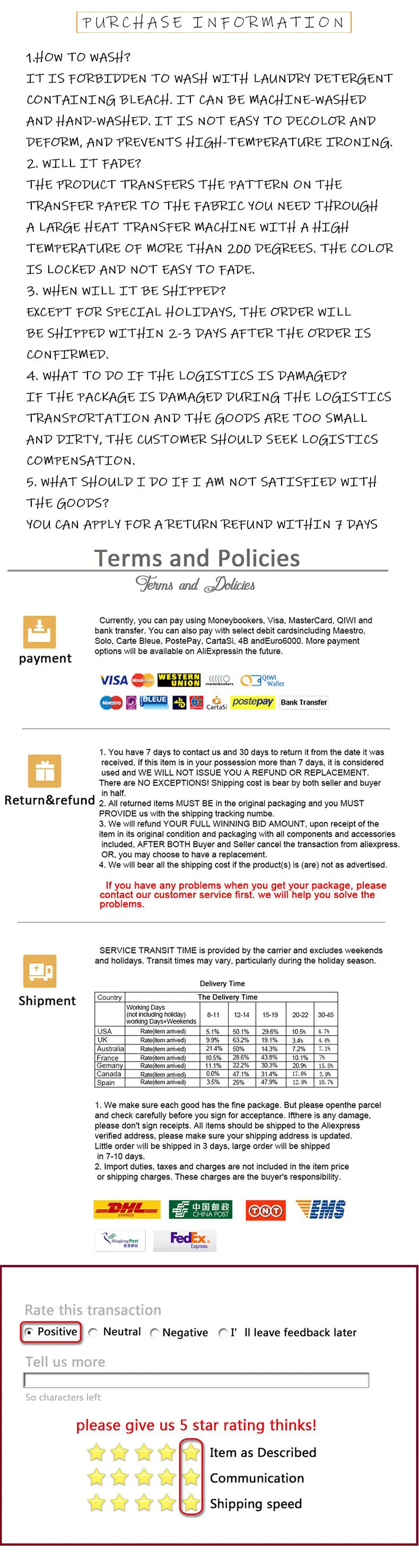 💌Если у Вас возникли какие-либо проблемы с полученным товаром, пожалуйста, не спешите просматривать или нажимать кнопку «Готово», немедленно свяжитесь со службой поддержки клиентов, и мы решим его для вас как можно скорее.