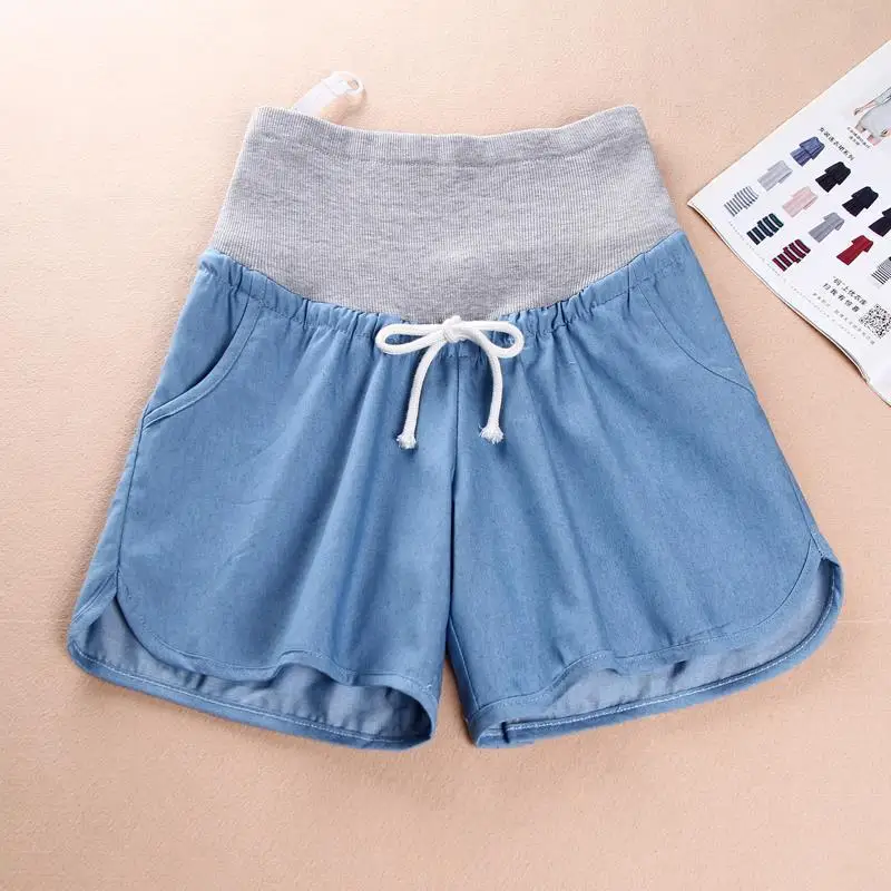 Иммитация денима Широкие штаны шорты для беременных женщин шорты с завязками для поддержки живота брюки для беременных Одежда