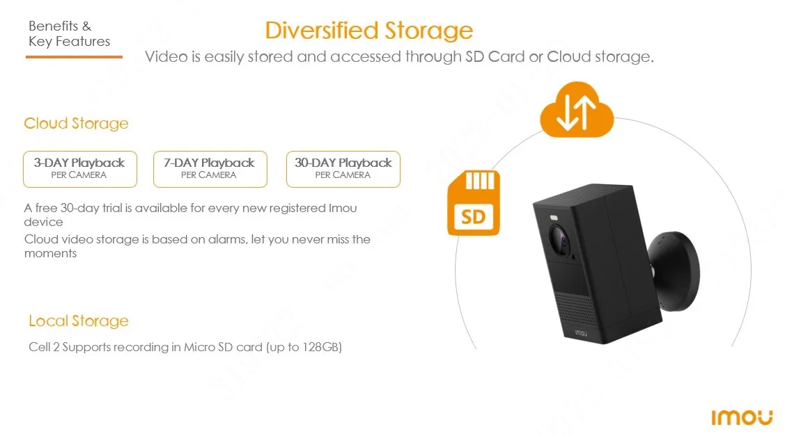 Видео легко хранится и доступно через карту micro SD или Облачное хранилище.