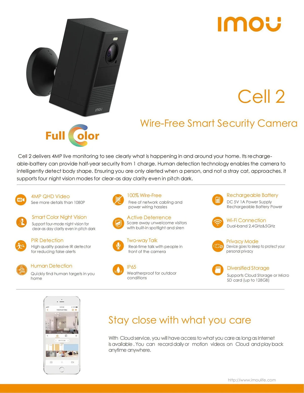 IMOU Cell 2 Аккумуляторная камера 5G Wi-Fi 4 МП Беспроводная погодозащищенная камера видеонаблюдения PIR Обнаружение человека ночное видение
