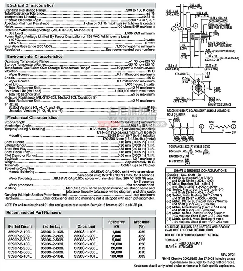 Импорт США, BOURNS 3590S-2-103L 3590S-2-502L 101L 202L 203L 503L 104L, 10-оборотный проволочный потенциометр, цифровой циферблат
