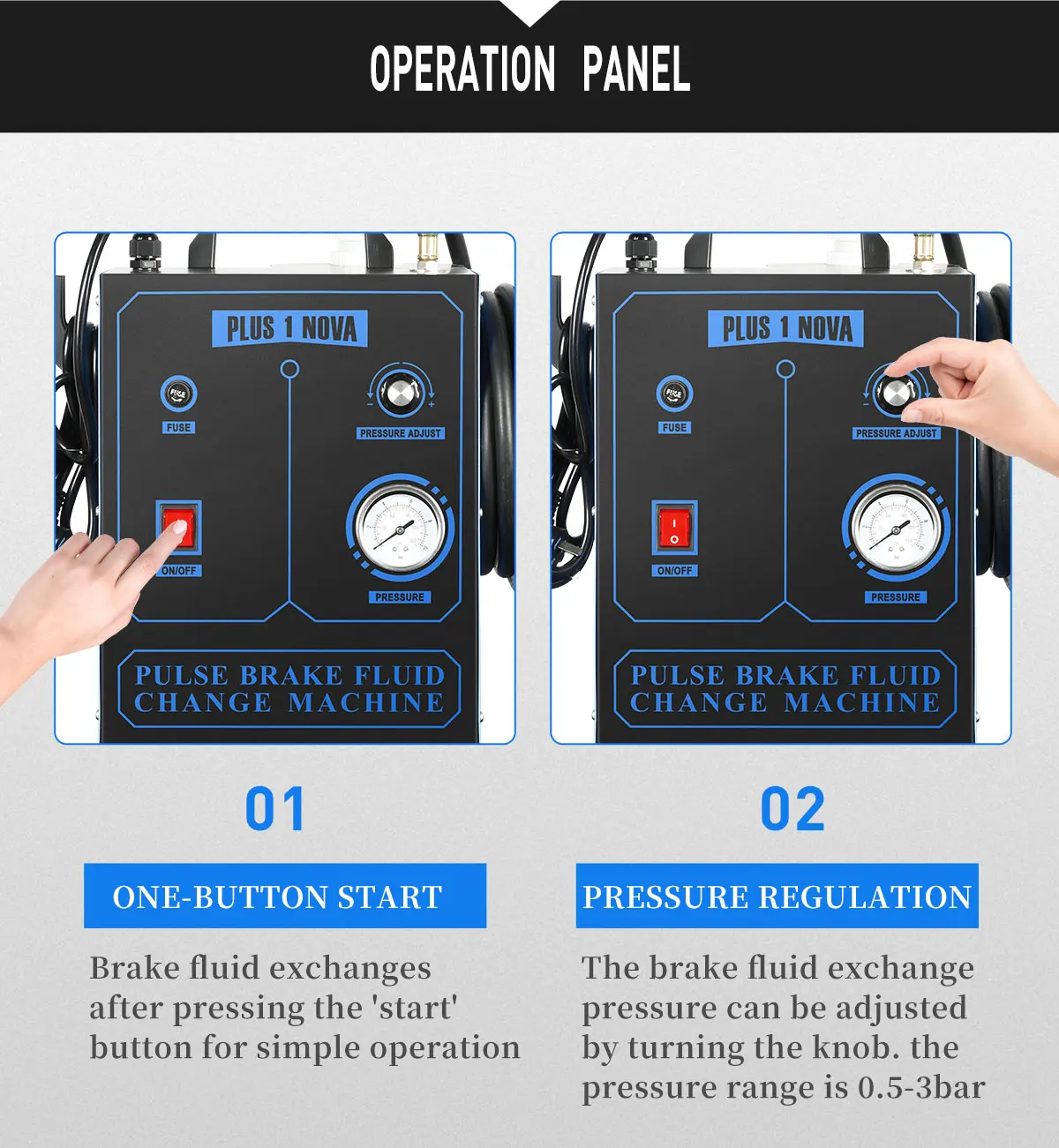 02:Давление обмена тормозной жидкости можно отрегулировать, повернув ручку. Диапазон давления 0,5-3 бар