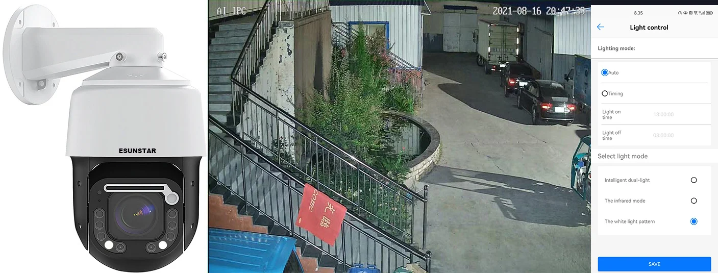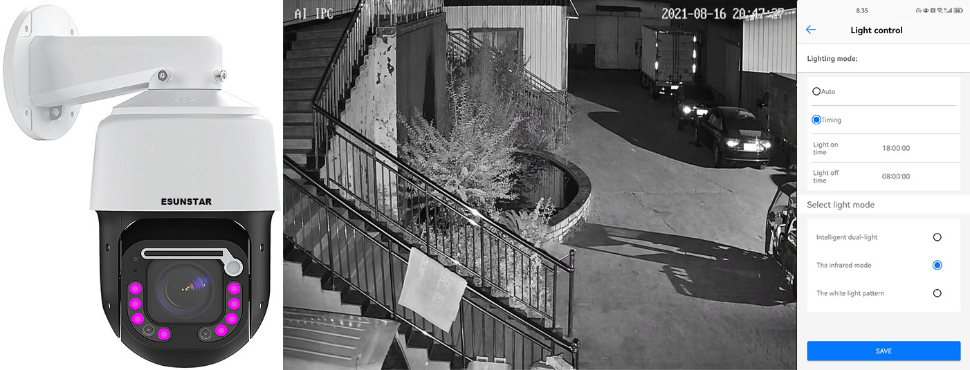 2. Поддержка 3 групп управления освещением: Инфракрасный ближний свет, инфракрасный Дальний свет и белый свет, которые могут реализовать полноцветный день и ночь, полный инфракрасный и другие режимы.
