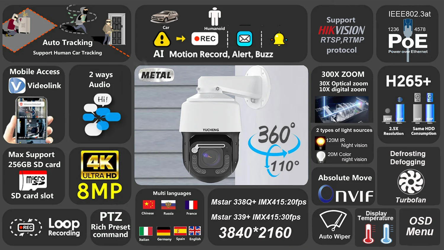 IMX415 4K 8MP 30fps 300X ZOOM POE