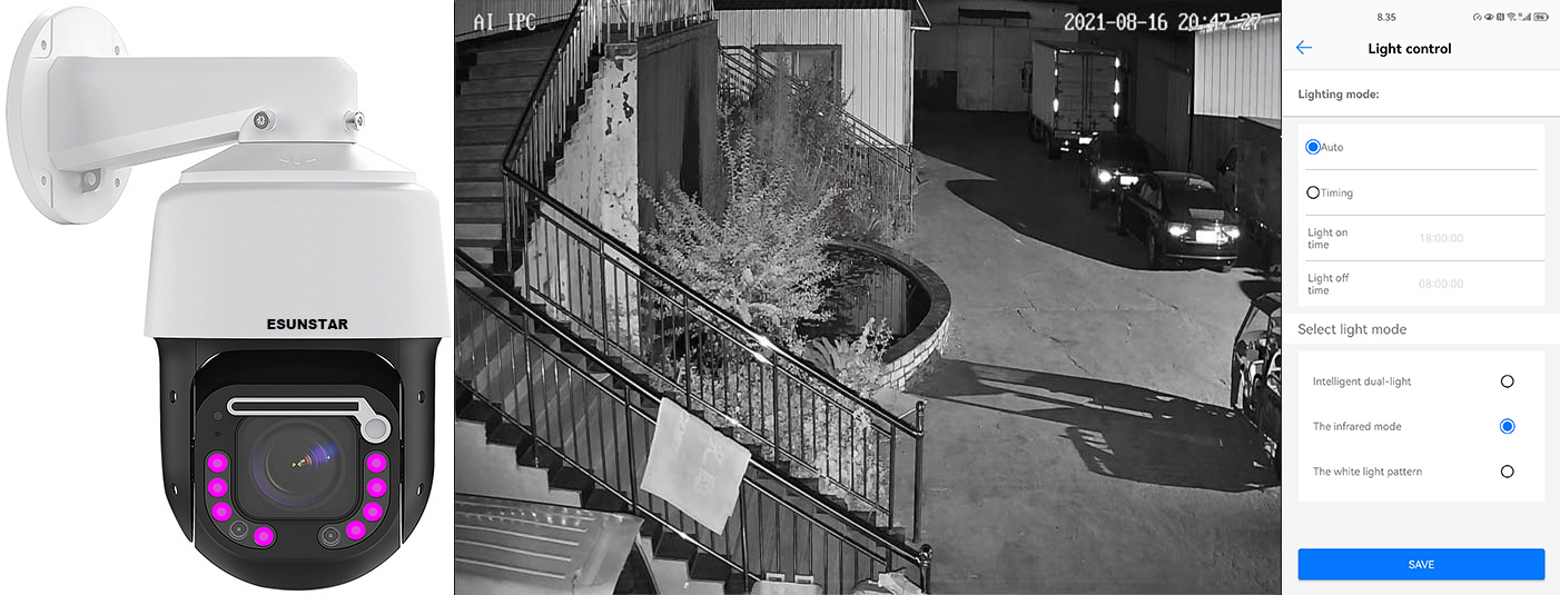 Пользователи могут переключать свет в режим инфракрасного ночного видения ночью.
