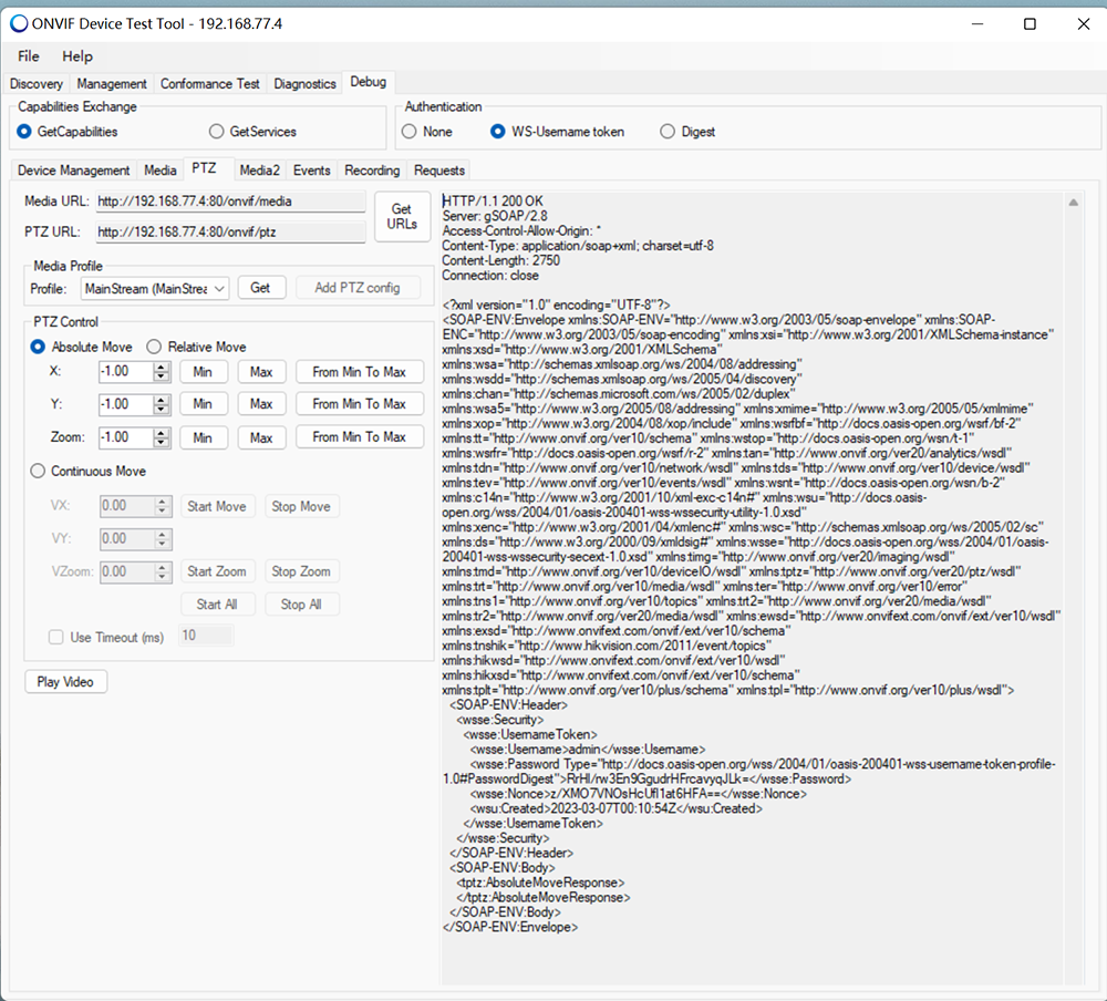 Поддерживает включение/выключение абсолютных координат панорамирования/наклона.