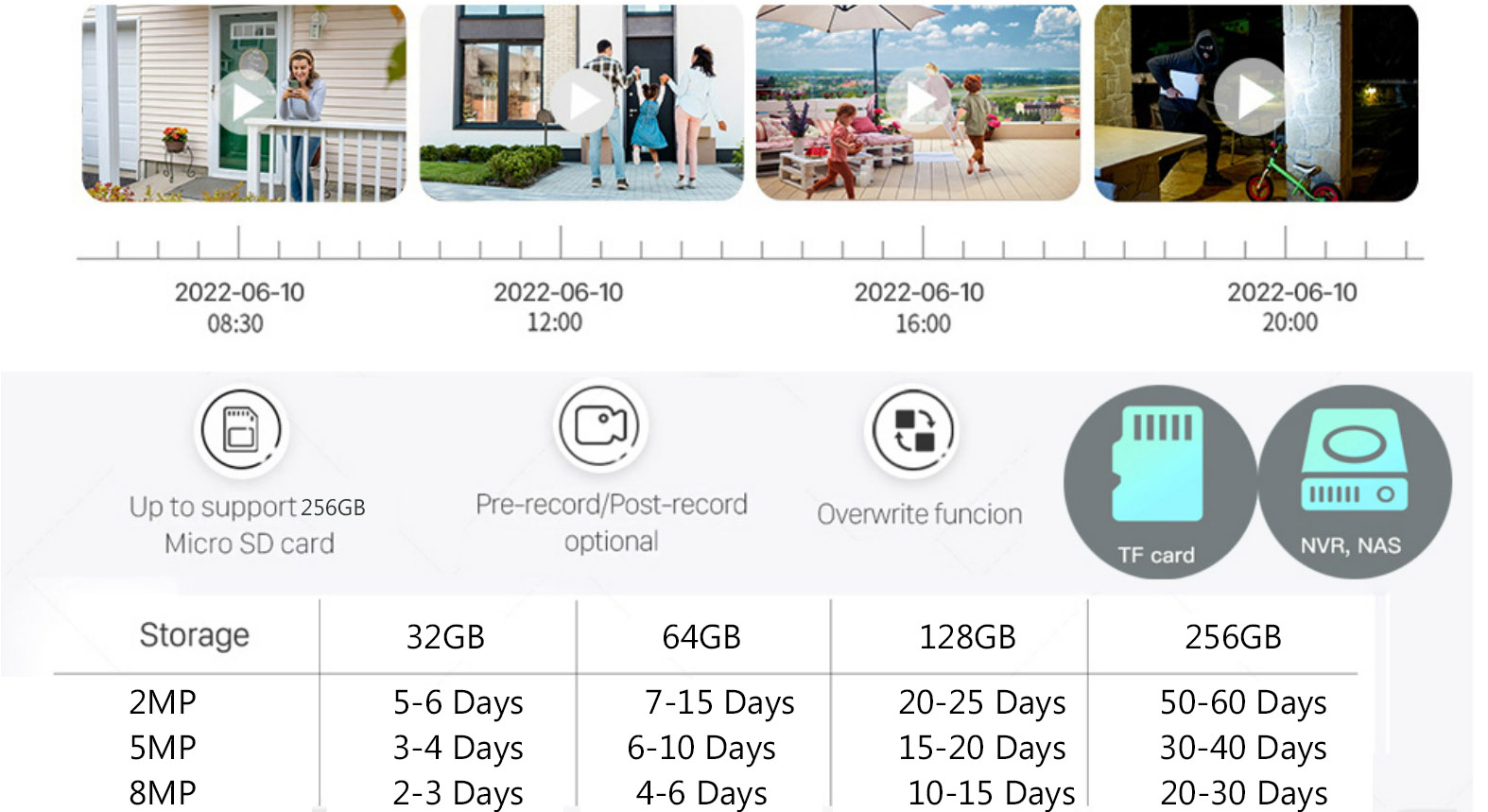 Когда камера обнаруживает человека или автомобиль, камера автоматически включает белый светодиод, и изображение представляет цветной режим ночного видения. Когда человек или машина уезжают, камера автоматически переключается в режим инфракрасного ночного видения.