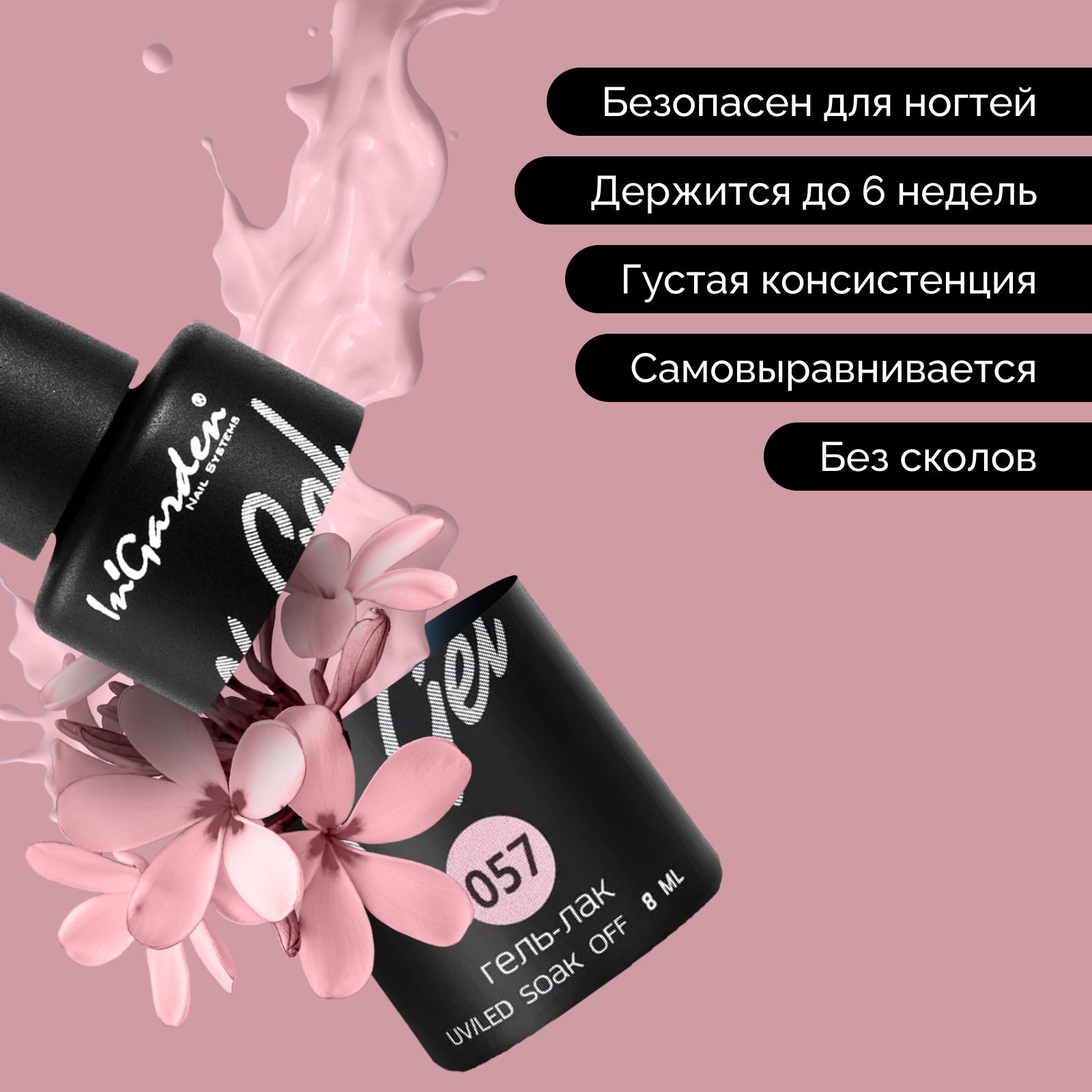 In'Garden Гель лак для ногтей, самовыравнивающийся плотный насыщенный светлый, декоративное покрытие для маникюра и педикюра, розовый, 8 мл