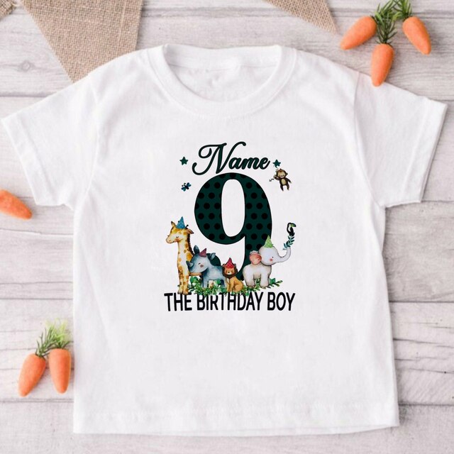 Персонализированная рубашка на день рождения От 1 до 9 лет Футболка для мальчиков с дикой тематической вечеринкой, футболка с изображением животного с именем, одежда на день рождения, детские топы