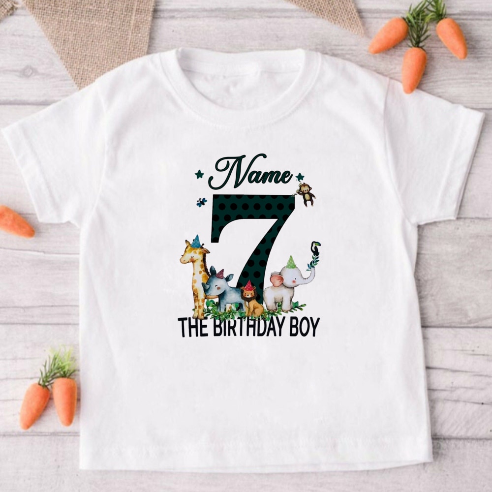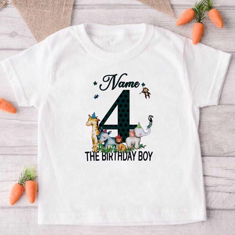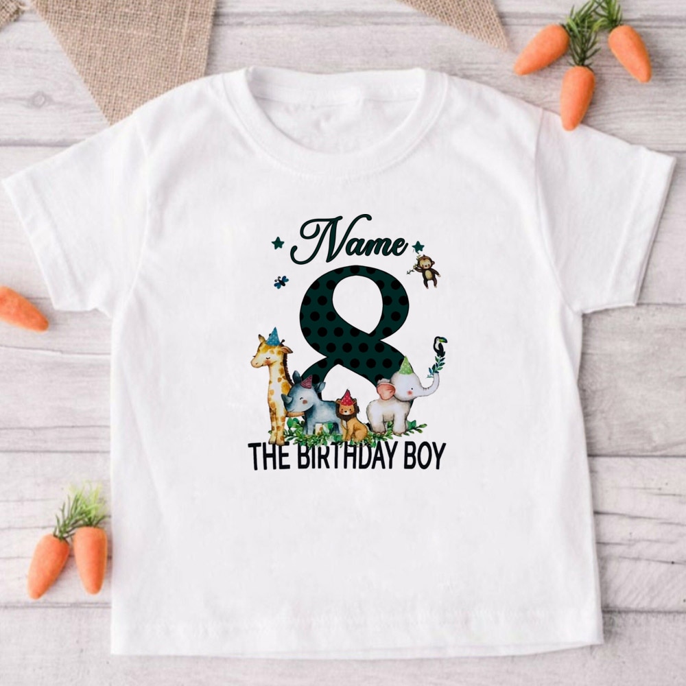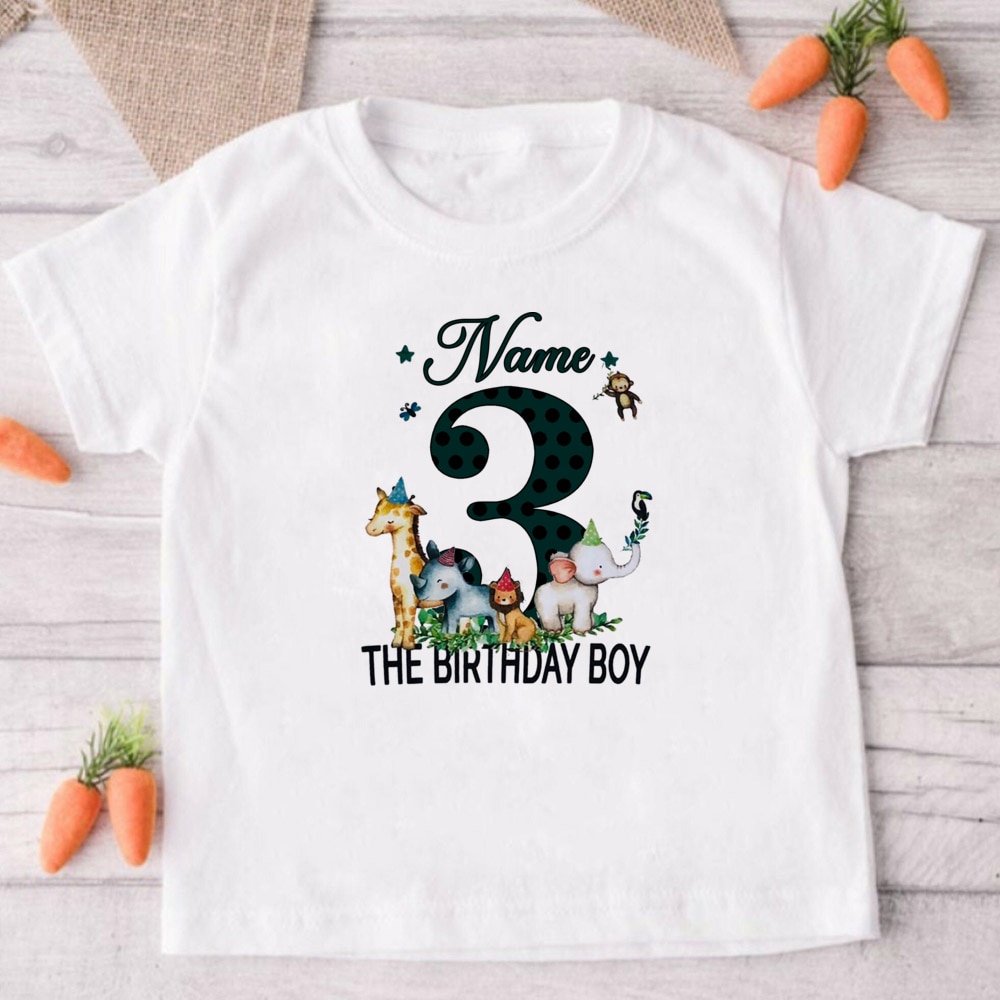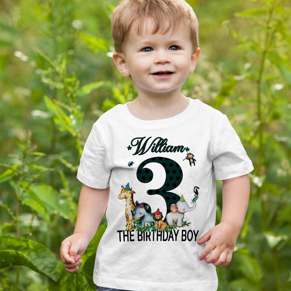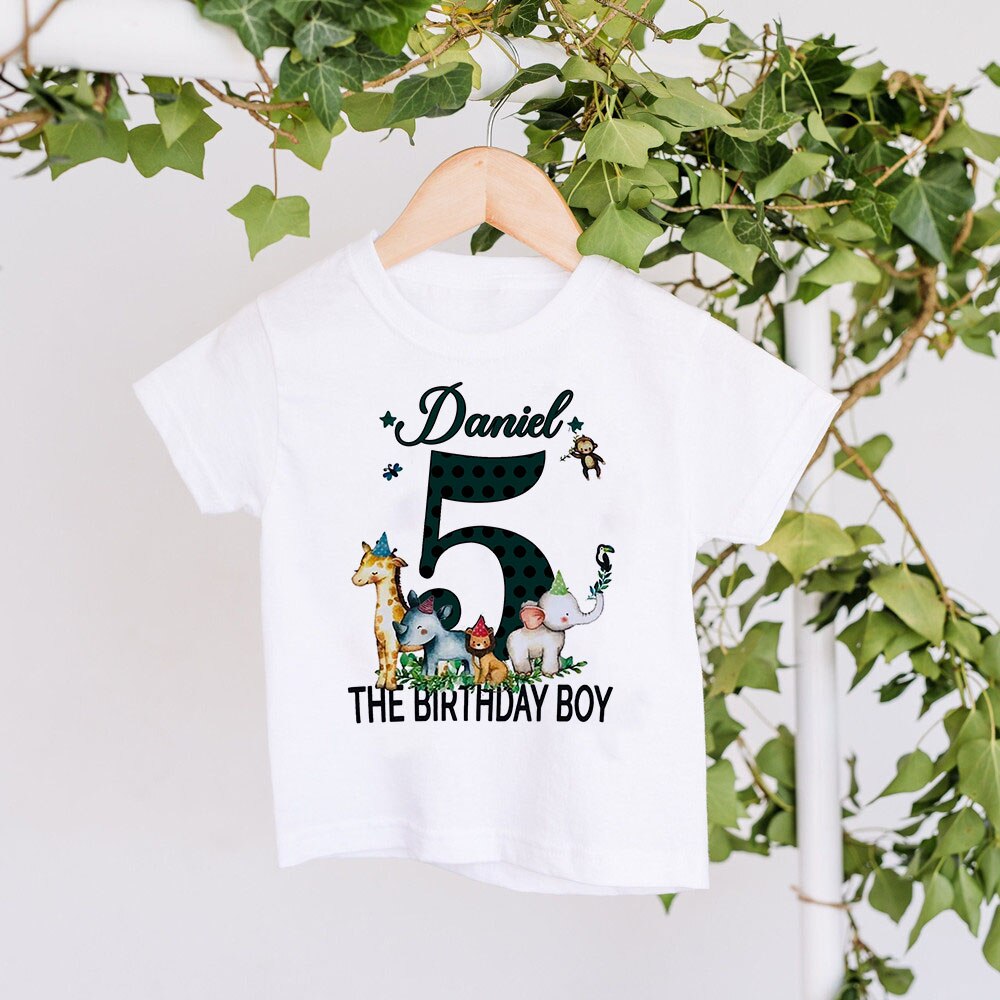 Индивидуализированная рубашка на день рождения, женская футболка, необычная тема, футболка для мальчиков с изображением животного с именем, одежда на день рождения, детские топы