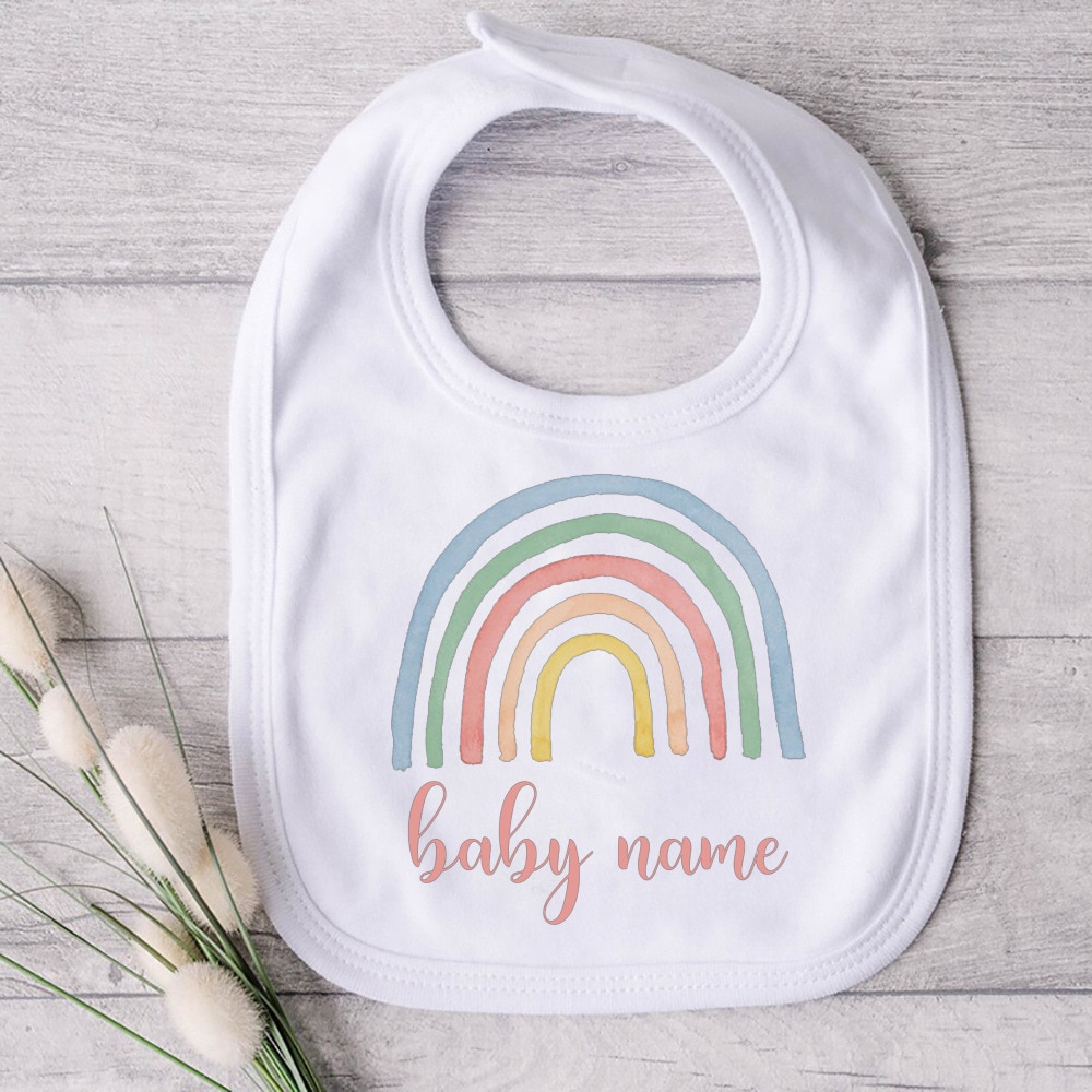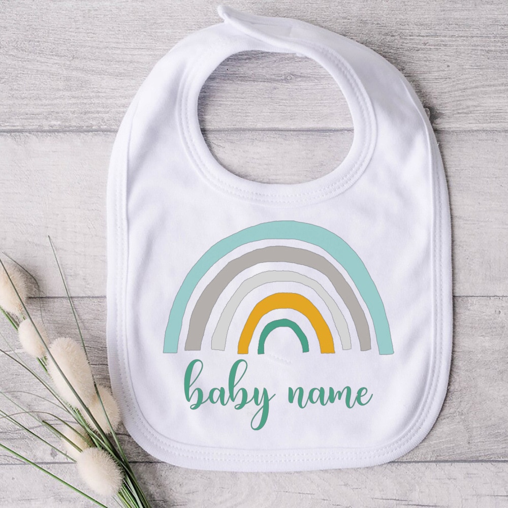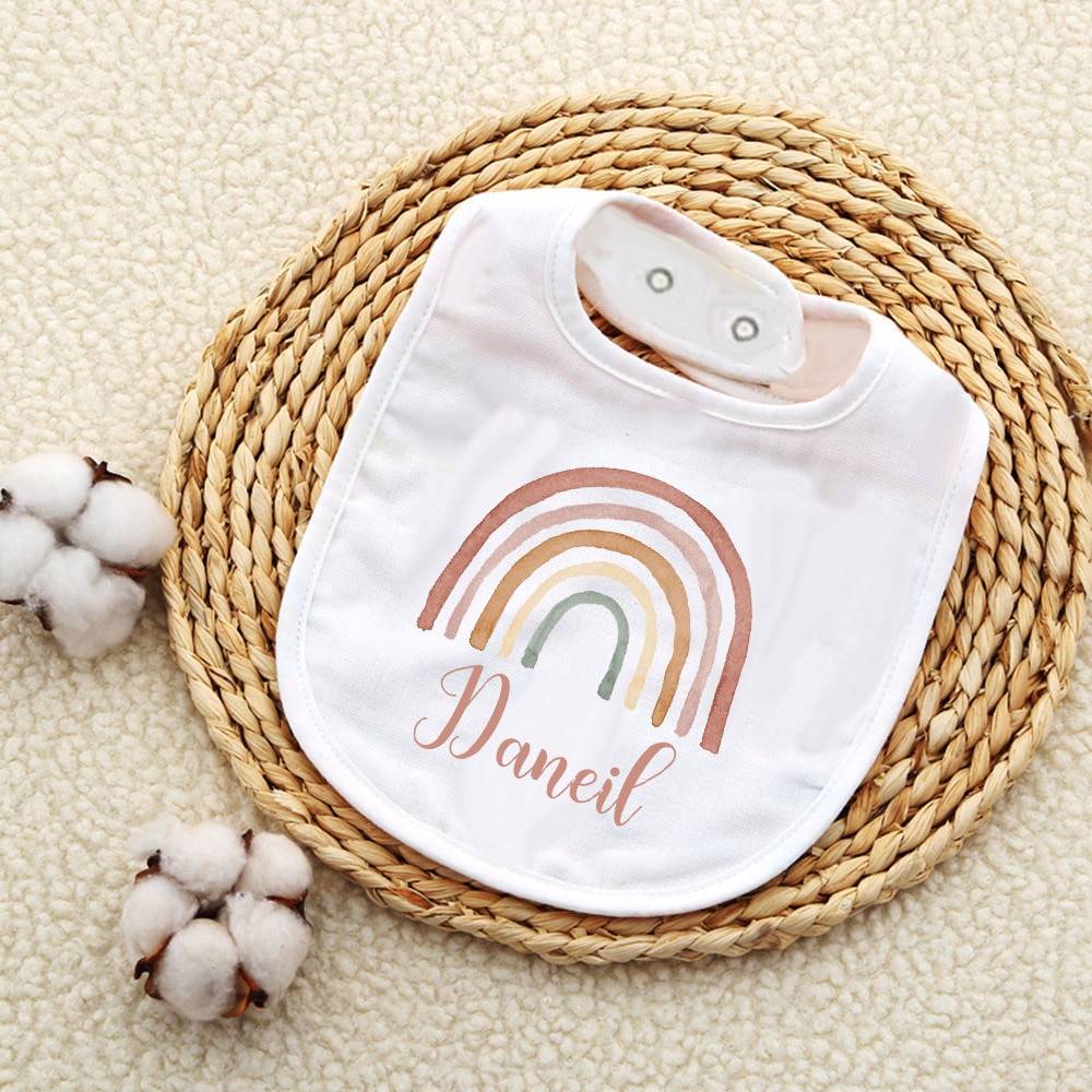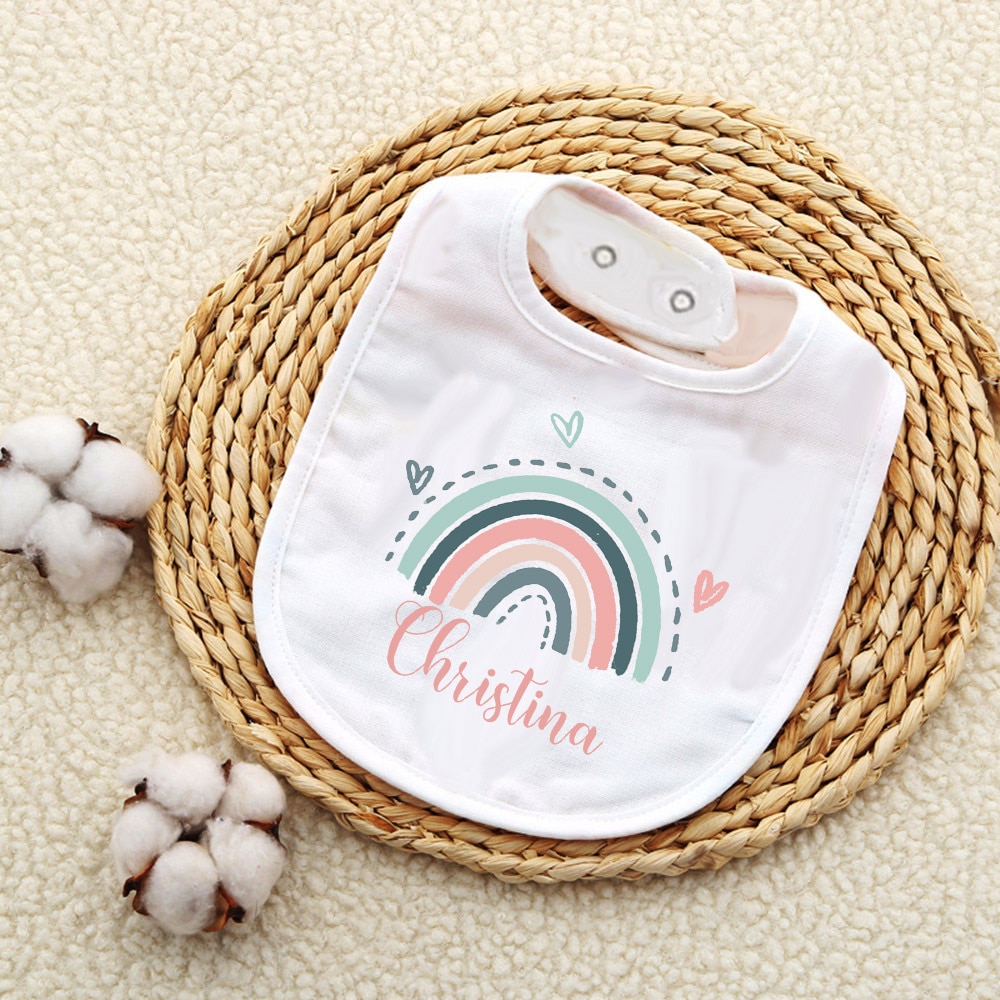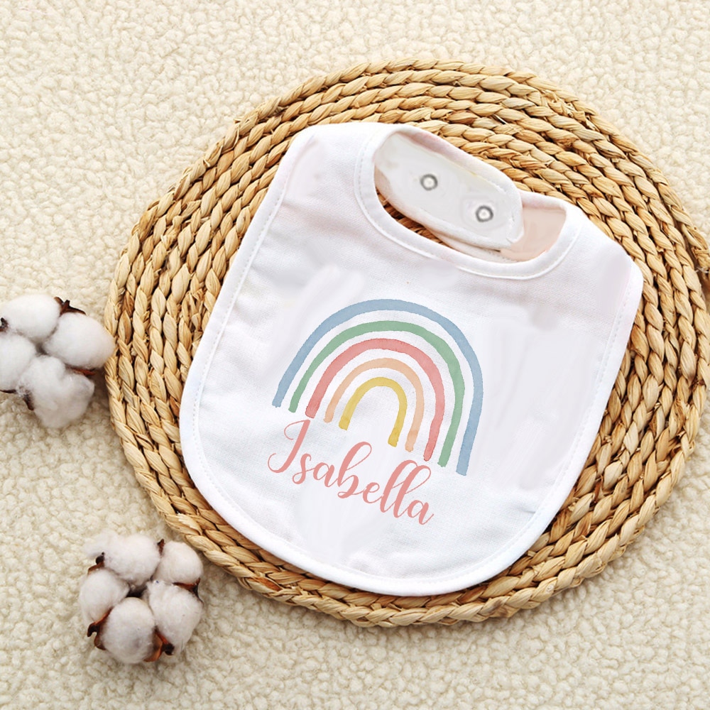 Индивидуальный детский нагрудник с изображением радуги, хлопковый нагрудник для девочек и мальчиков, слюнявчик для новорожденных, детский нагрудник для крещения, подарок на день рождения