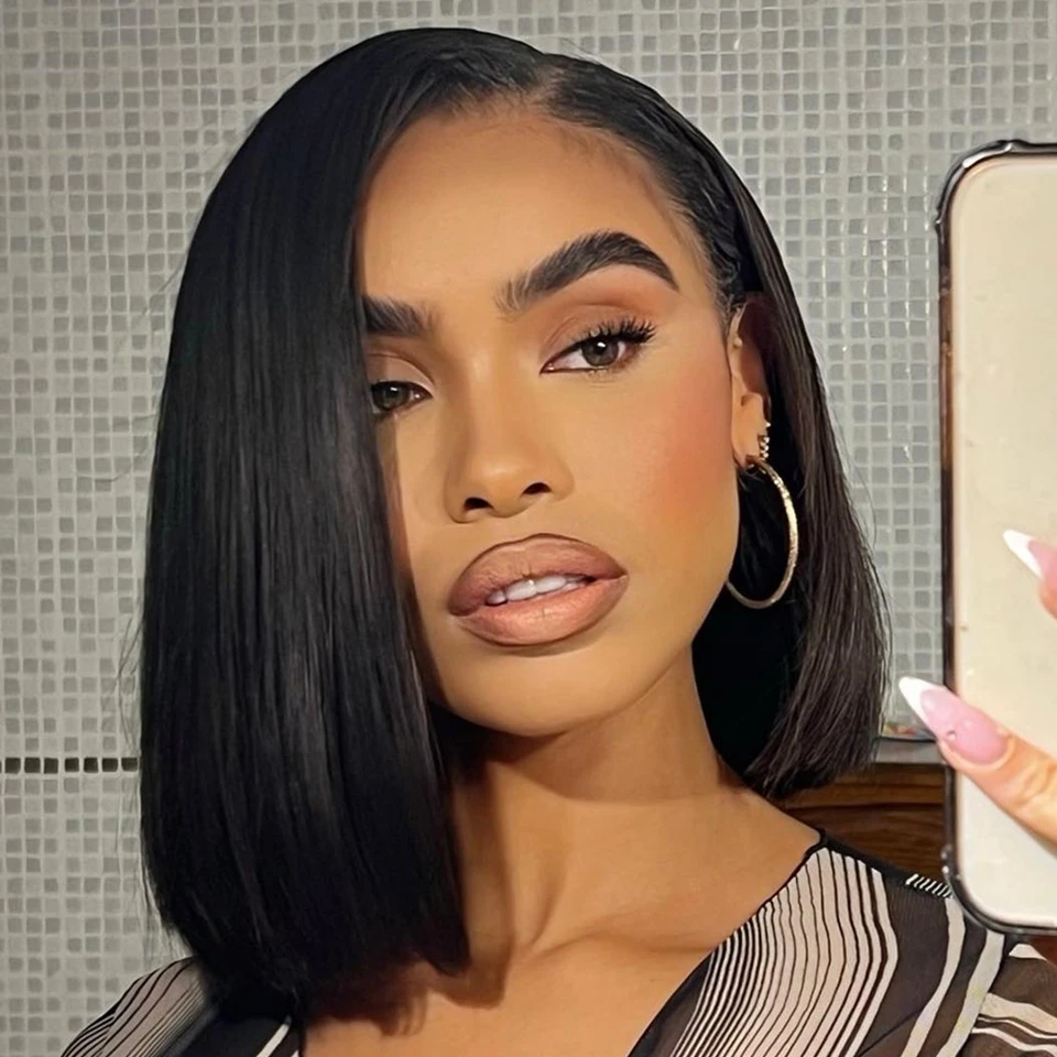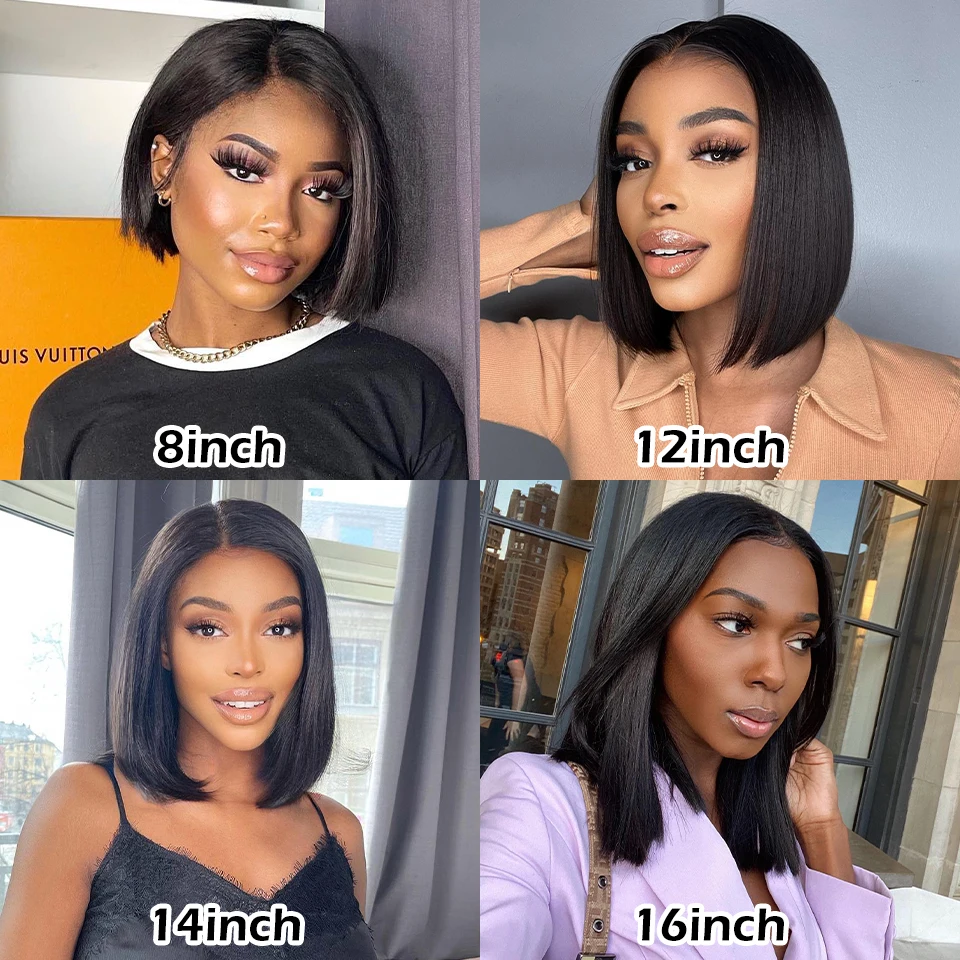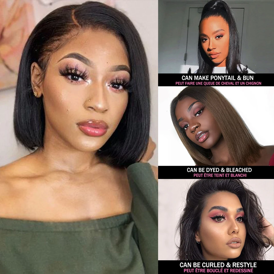 Индийские прямые короткие парики боб, парик из человеческих волос на сетке спереди 13x4, прозрачные предварительно выщипанные фронтальные парики для женщин, бесплатная часть