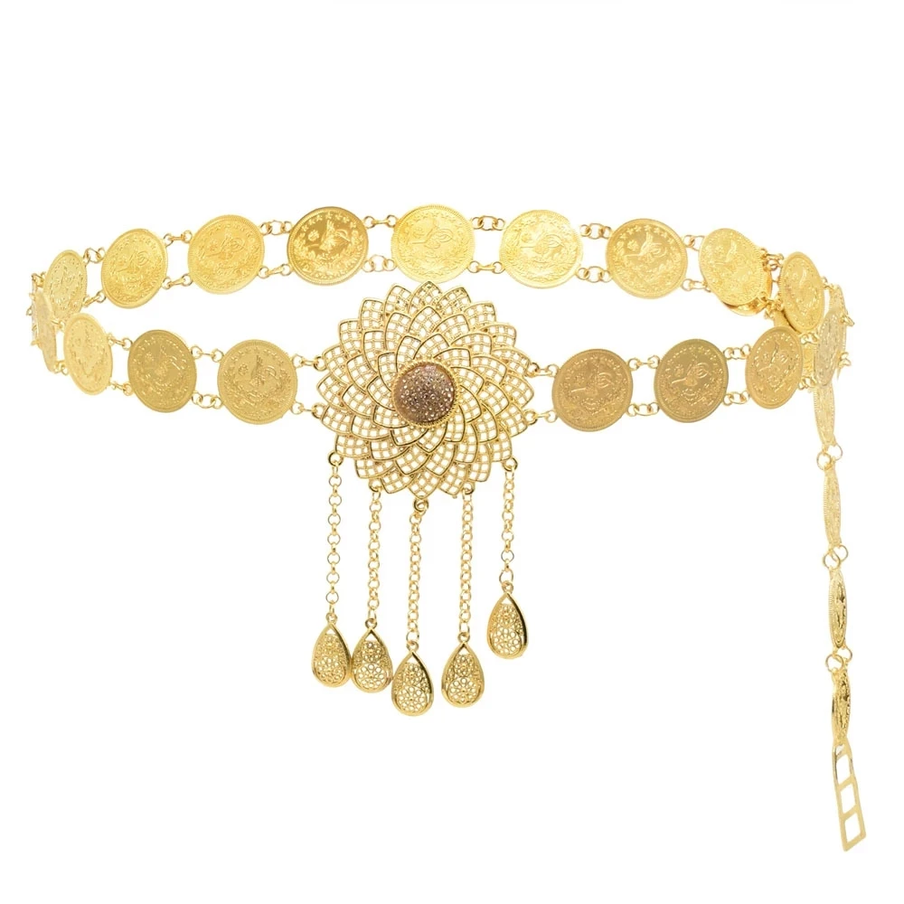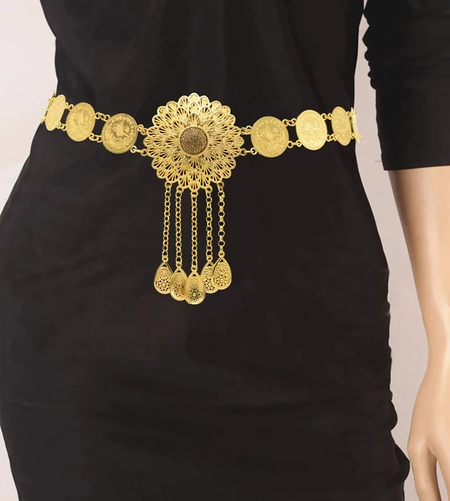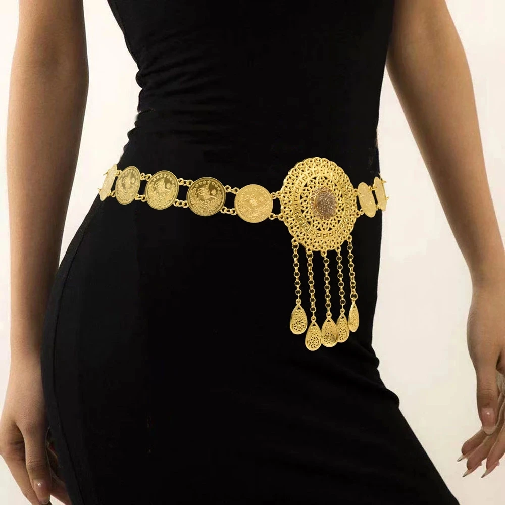 Индийские золотые металлические цепочки для живота для женщин, леди, полые цветы, монета, длинные кисточки, бикини цепочка для тела на талию, Египет, ювелирные изделия для вечеринки