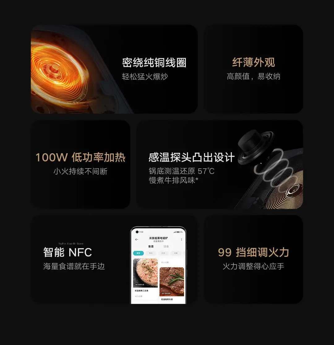 Xiaomi Mijia ультра-тонкая индукционная плита 2100 Вт Высокая мощность 100 Вт низкая мощность тепла непрерывная ручка OLED 99 передач Регулируемый нагрев